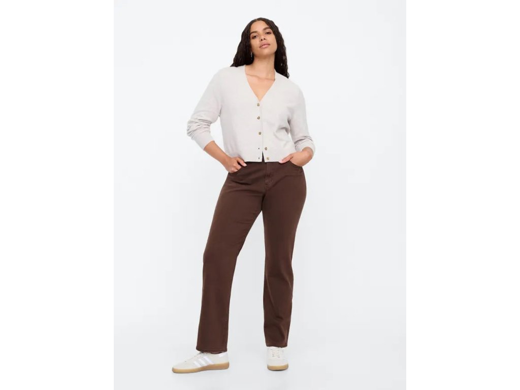 Pri hľadaní zadajte frázy ako dámske džínsy s vysokým pásom, hnedé džínsy, rovné džínsy alebo high rise jeans. Našli ste to pravé – teraz už stačí iba rozhodnúť sa pre svoju farbu a strih. Tento model to spĺňa na jedničku.