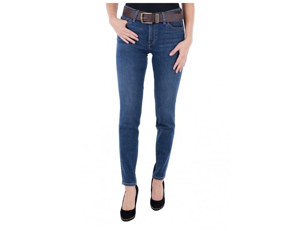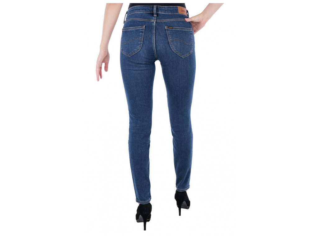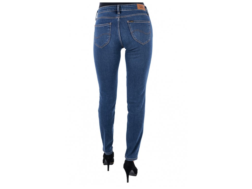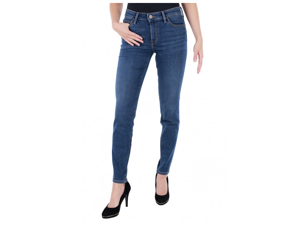 Tmavo modré dámske strečové džínsy v modernom úzkom strihu SCARLETT so stredným pásom a úzkymi nohavicami až po členky. Jednoduché džínsy vynikajú tmavým odtieňom modrej farby s jemným ošúchaním okolo kolien, zipsovým zapínaním a tmavým prešitím. Nechýba ani kožená nášivka s logom značky LEE na zadnej strane nohavíc. Vďaka materiálu s prímesou elastanu je ich nosenie veľmi pohodlné. Tieto elegantné nohavice dokonale kopírujú tvar dámskej postavy a hodí sa či už do práce, či na voľný čas. Vhodné ku košeli, ale aj tričku. Ideálnym doplnkom je kožený opasok.