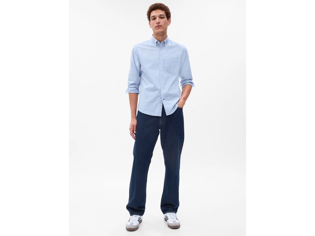 Naše džínsy sú inšpirované ikonickým štýlom 90. rokov, ktorý je stále populárny a vyhľadávaný. Vďaka modernému poňatiu pôvodného strihu Gap získate autentický vintage vzhľad, ktorý nikdy nevyjde z módy. Tmavomodrá farba a rovný strih nohavíc dodávajú džínsom univerzálny vzhľad, ktorý sa hodí ku každej príležitosti.