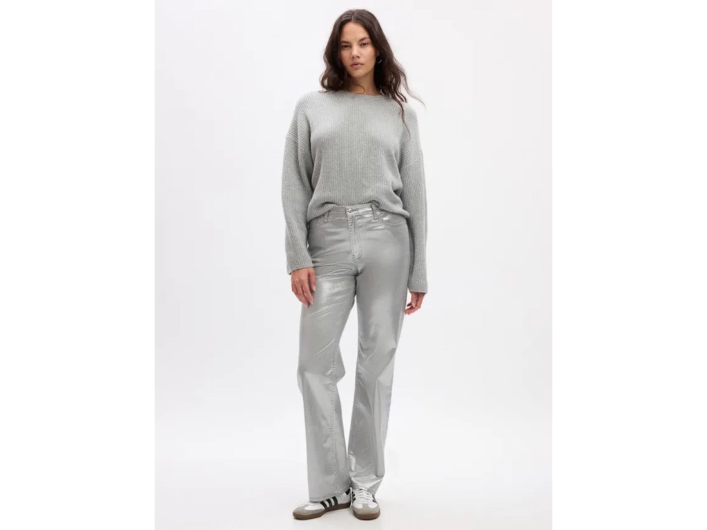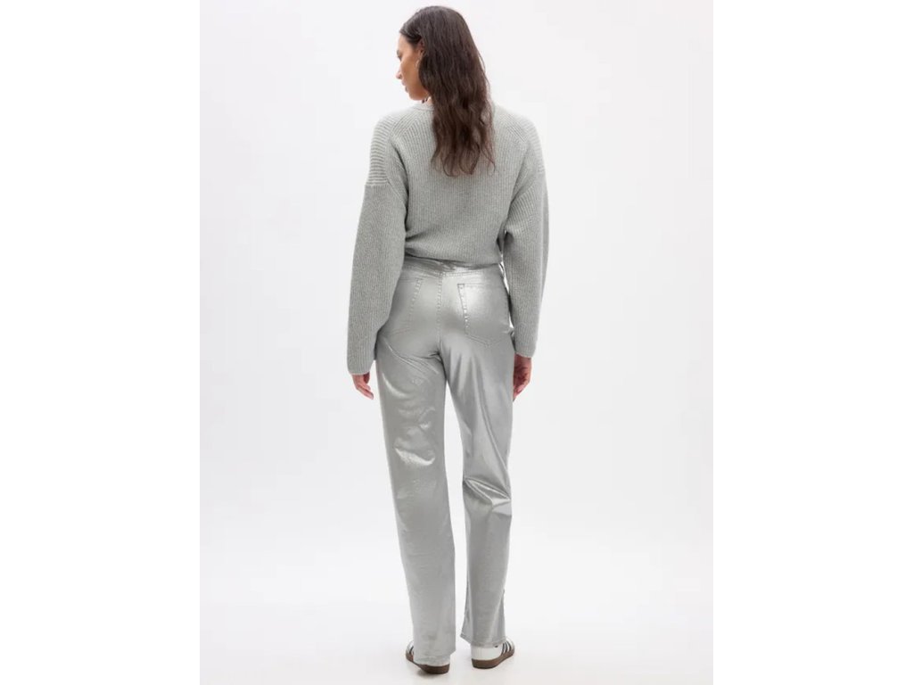 Hľadáš džínsy, v ktorých sa budeš cítiť sebavedome od rána do noci? Tieto dámske strečové džínsy s trendmi metalický vzhľad v šedom tóne “silver” sú presne ten kúsok, ktorý v šatníku povýši každý outfit. Stredne vysoký pás (mid rise) elegantne podporí siluetu, uvoľnený rovný strih dodá nenútený vibe a vďaka zmesi bavlny s elastickými vláknami sa džínsy príjemne prispôsobia tvojmu telu bez pocitu stiahnutia.