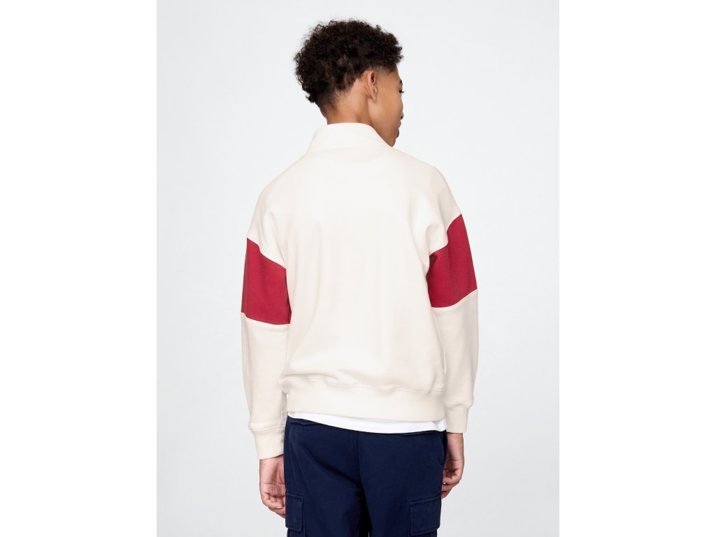 Detská mikina z mäkkého fleecu s bavlnenou zmesou je navrhnutá pre maximálne pohodlie a moderný vzhľad. Má stojačik so zapínaním na zips do polovice dĺžky, čo umožňuje ľahké obliekanie. Dlhé rukávy a spadnuté ramená dodávajú mikine štýlový a hravý vzhľad, zatiaľ čo rebrované manžety a spodný lem zaisťujú, že mikina dobre sedí. Táto mikina obsahuje 23% recyklovaného polyesteru, čím prispieva k zníženiu odpadu a šetrnému využívaniu prírodných zdrojov. Relax strih je rovný a poskytuje dostatok priestoru na voľnosť pohybu. Skvelá voľba pre deti, ktoré chcú spojiť pohodlie s módnym športovým štýlom. Pokiaľ preferujete užší strih, odporúčame zvoliť o jednu veľkosť menšiu.Dodatočné parametre