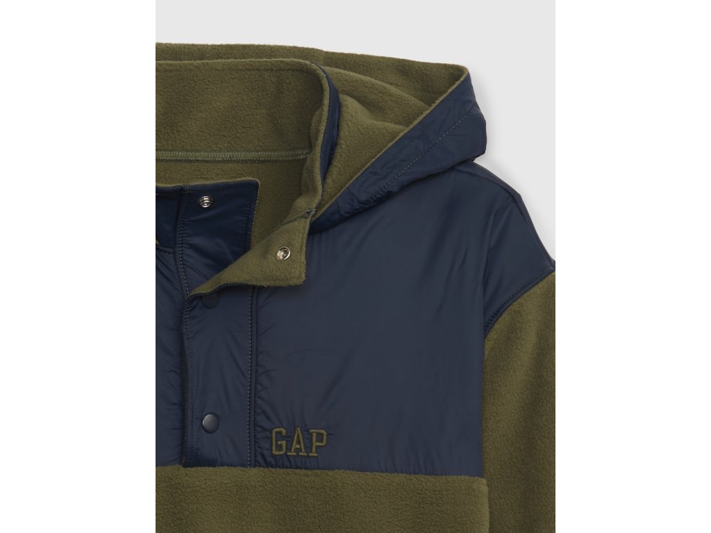Detská fleecová mikina s kapucňou. Strih cez hlavu. Pri krku stojačik a kapucňa. Zapínanie na 3 patentky. Predné šikmé vrecká. Dlhé rukávy s pružným lemom.Oblečenie označené ako Gap for Good je vyrobené s ohľadom k našej planéte, a preto používame prírodné alebo recyklované materiály a zároveň sa snažíme znížiť vplyv výroby na vodné zdroje. Viac sa dozviete na Gap for Good.