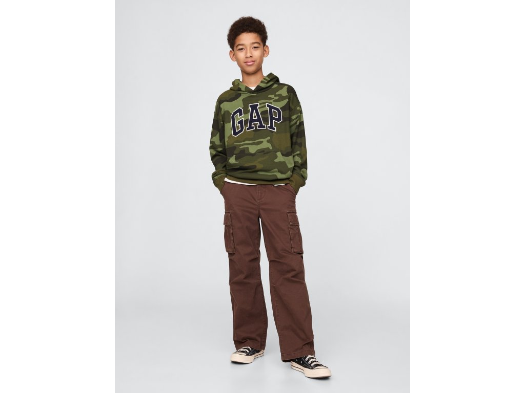 Detská mikina z mäkkého French terry materiálu s 23% recyklovaného polyesteru, ktorý pomáha znižovať spotrebu prírodných zdrojov a obmedzovať odpad. Pohodlný strih s kapucňou a spadnutými ramenami poskytuje maximálny komfort pre každodenné nosenie. Mikina má dlhé rukávy zakončené rebrovanými manžetami, praktické vrecko na prednej strane a ikonické logo Gap na hrudi. Spodný lem je tiež rebrovaný na lepšie prispôsobenie a pohodlné nosenie. Vďaka voľnému strihu a dĺžke pod bokmi je táto mikina ideálnou voľbou pre každodenné pohodlie – skvele sa hodí k džínsom, legínam aj teplákom.Dodatočné parametre