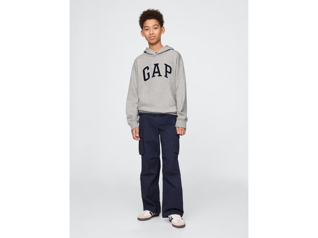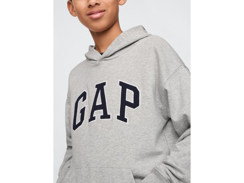 Detská mikina z mäkkého French terry materiálu s 23% recyklovaného polyesteru, ktorý pomáha znižovať spotrebu prírodných zdrojov a obmedzovať odpad. Pohodlný strih s kapucňou a spadnutými ramenami poskytuje maximálny komfort pre každodenné nosenie. Mikina má dlhé rukávy zakončené rebrovanými manžetami, praktické vrecko na prednej strane a ikonické logo Gap na hrudi. Spodný lem je tiež rebrovaný na lepšie prispôsobenie a pohodlné nosenie. Vďaka voľnému strihu a dĺžke pod bokmi je táto mikina ideálnou voľbou pre každodenné pohodlie – skvele sa hodí k džínsom, legínam aj teplákom.Dodatočné parametre