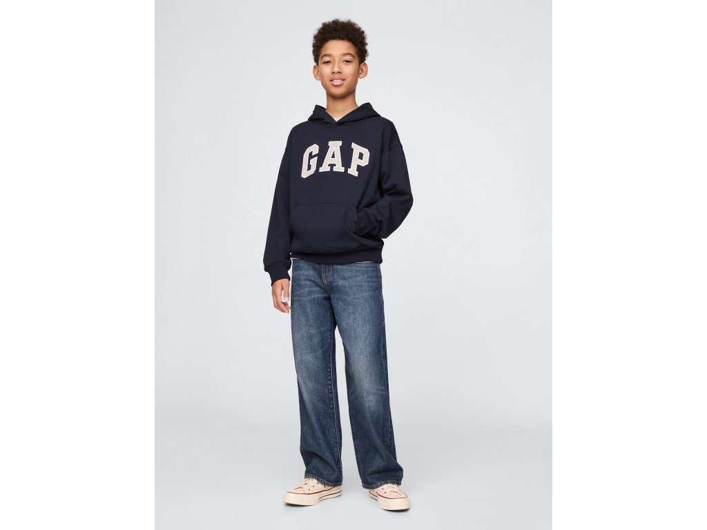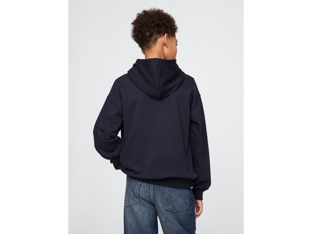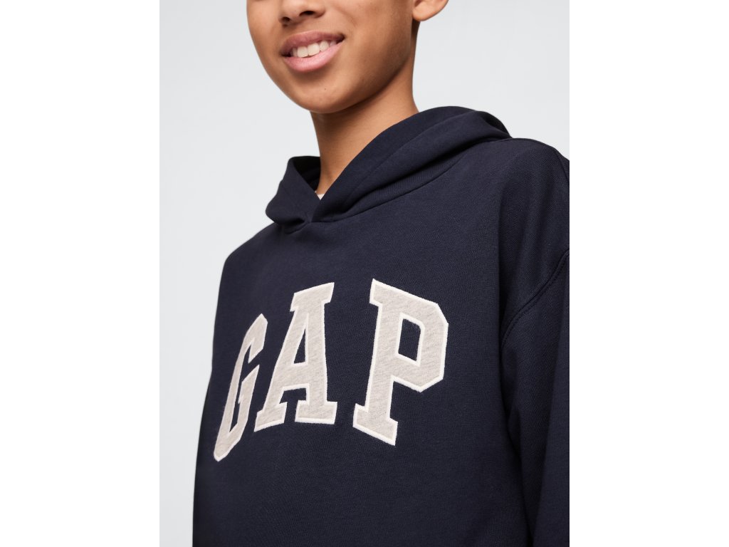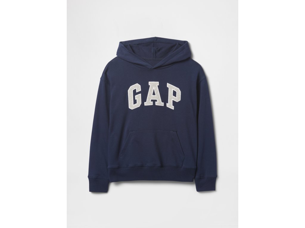 Detská mikina z mäkkého French terry materiálu s 23% recyklovaného polyesteru, ktorý pomáha znižovať spotrebu prírodných zdrojov a obmedzovať odpad. Pohodlný strih s kapucňou a spadnutými ramenami poskytuje maximálny komfort pre každodenné nosenie. Mikina má dlhé rukávy zakončené rebrovanými manžetami, praktické vrecko na prednej strane a ikonické logo Gap na hrudi. Spodný lem je tiež rebrovaný na lepšie prispôsobenie a pohodlné nosenie. Vďaka voľnému strihu a dĺžke pod bokmi je táto mikina ideálnou voľbou pre každodenné pohodlie – skvele sa hodí k džínsom, legínam aj teplákom.Dodatočné parametre