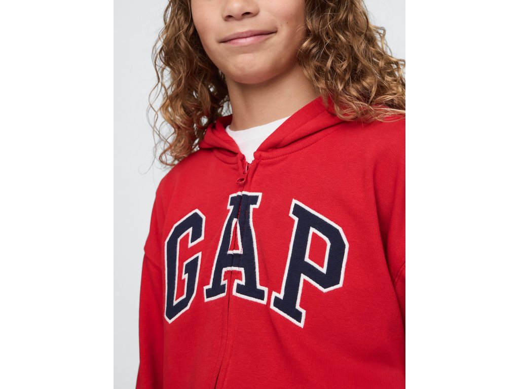 Detská mikina z mäkkého French terry materiálu s prímesou 23% recyklovaného polyesteru, ktorý pomáha šetriť prírodné zdroje a znižovať množstvo odpadu. Má pohodlný strih so spadnutými ramenami a dlhými rukávmi zakončenými rebrovanými manžetami. Mikina je vybavená praktickým zipsom po celej dĺžke, kapucňou a klokaními vreckami, ktoré sú ideálne na schovanie rúk alebo drobností. Na hrudi sa nachádza ikonické logo Gap a niektoré varianty sú dostupné aj s celoplošnou potlačou pre hravejší vzhľad. Rovný a uvoľnený strih spolu s dĺžkou pod bokmi zaisťuje pohodlie a voľnosť pohybu. Perfektná voľba na každodenné nosenie – ľahko sa kombinuje s džínsami, teplákmi aj legínami.Dodatočné parametre