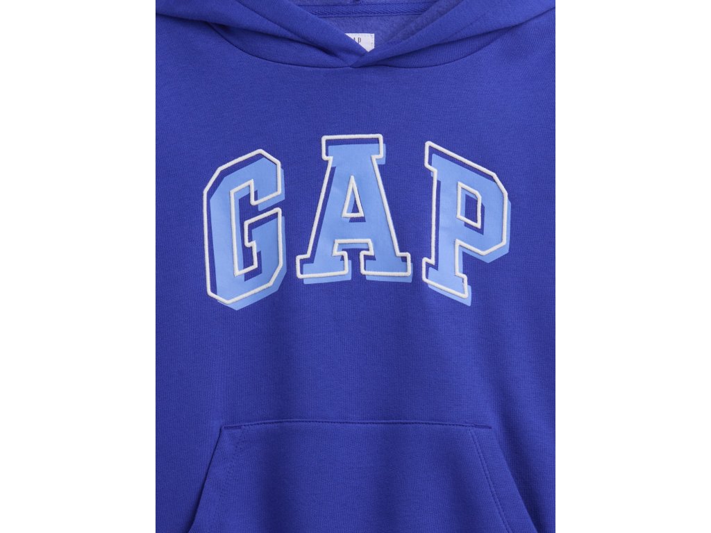 Chlapčenská fleecová mikina spája pohodlie, funkčnosť a hravý štýl. Mäkký fleece príjemne zahreje v chladnejších dňoch, kapucňa dodáva extra komfort a ležérny vzhľad. Dlhé rukávy so spadnutými ramenami, rebrované manžety a spodný lem zaisťujú, že mikina dobre drží tvar aj po praní. Rovný, uvoľnený strih neobmedzuje v pohybe a klokanie vrecko slúži na drobnosti aj na zahriatie rúk. Prednú stranu zdobí grafický motív a logo Gap. Vyrobené z materiálu s 23% recyklovaného polyesteru, ktorý pomáha šetriť prírodné zdroje. Produkt vznikol v zodpovednej továrni zapojenej do programu RISE na podporu rovnosti a rozvoja žien v odevnom priemysle. Dĺžka siaha pod úroveň bokov.Dodatočné parametre
