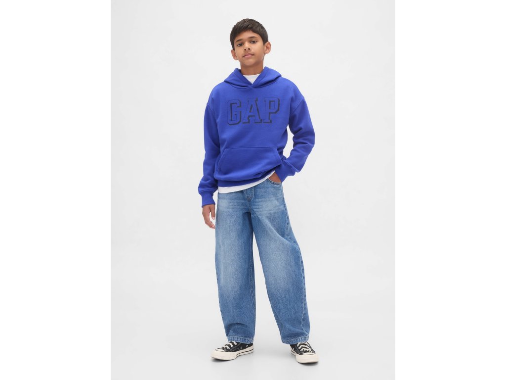 Chlapčenská mikina z mäkkého fleecu ponúka pohodlie, teplo a štýl pre každý deň. Hrejivý materiál s 23% recyklovaného polyesteru pomáha znižovať odpad a šetriť prírodné zdroje. Mikina má kapucňu, spadnutý ramenný šev, dlhé rukávy s pružnými manžetami a rovný strih pre voľný pohyb. Prednú stranu zdobí logo Gap a klokanie vrecko poskytuje priestor na drobnosti aj zahriatie rúk. Rebrovaný spodný lem drží tvar. Dĺžka pod bokmi zaisťuje extra krytie aj pohodlie. Rovný, voľnejší relaxed strih.Dodatočné parametre