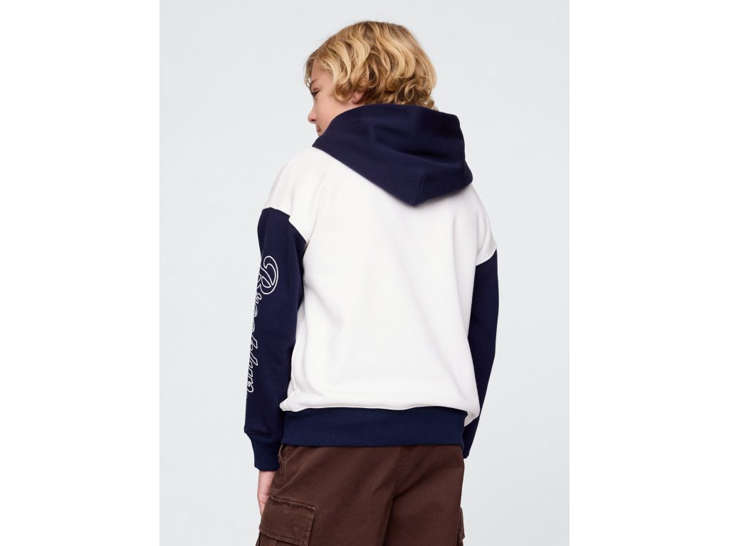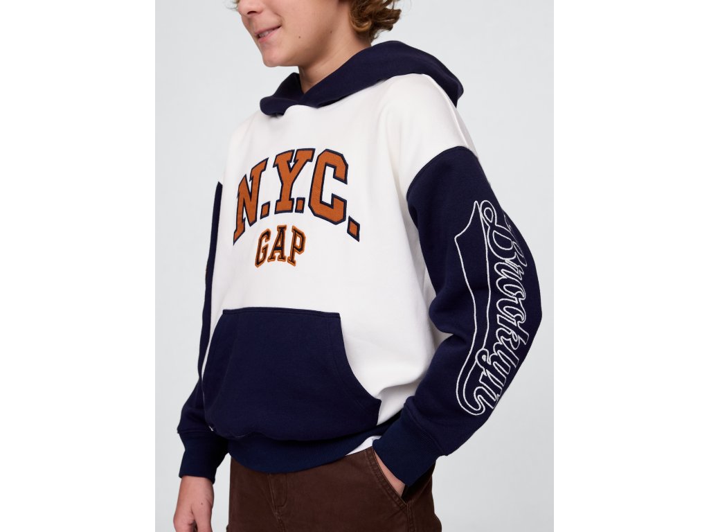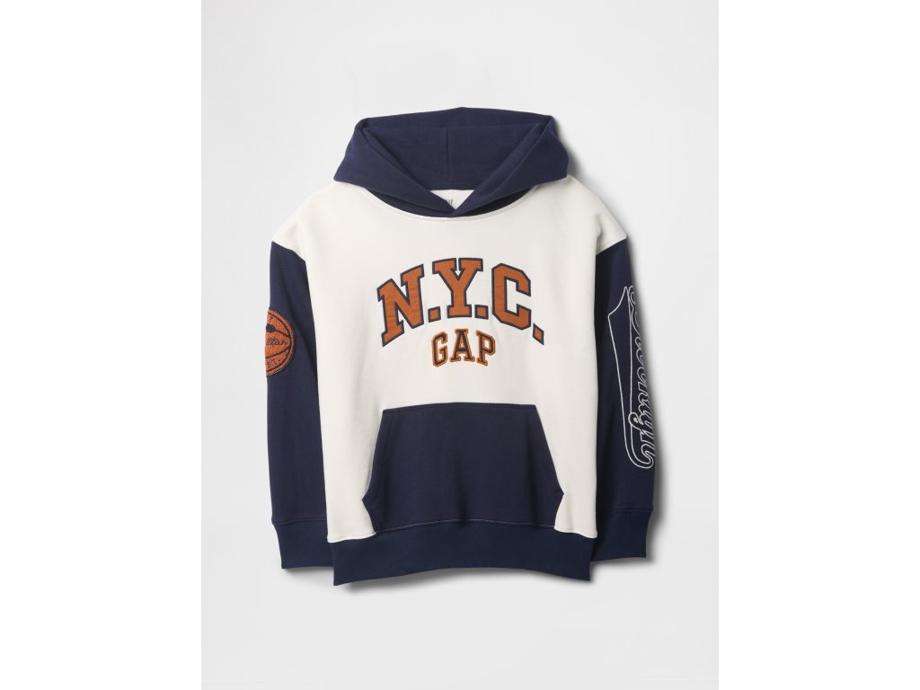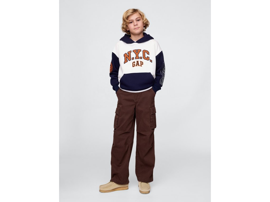 Detská mikina s kapucňou z mäkkého bavlneného materiálu s prímesou 23% recyklovaného polyesteru, ktorý pomáha znižovať odpad a šetriť prírodné zdroje. Vďaka svojmu mäkkému French terry prevedeniu poskytuje maximálne pohodlie pri každodennom nosení. Má kapucňu, dlhé rukávy a rebrované manžety pre lepšie prispôsobenie. Na prednej strane sa nachádza výrazné Gap NYC logo. Farebne kontrastný design dodáva mikine športový a trendy vzhľad. Praktické klokanie vrecko umožňuje uložiť drobnosti alebo zahriať ruky. Rovný, pohodlný strih poskytuje voľnosť pohybu a ľahko sa kombinuje s teplákmi, džínsami alebo šortkami. Mikina siaha k bokom, čo z nej robí ideálnu vrstvu na každodenné nosenie. Pokiaľ preferujete užší strih, odporúčame zvoliť o jednu veľkosť menšie číslo.Dodatočné parametre