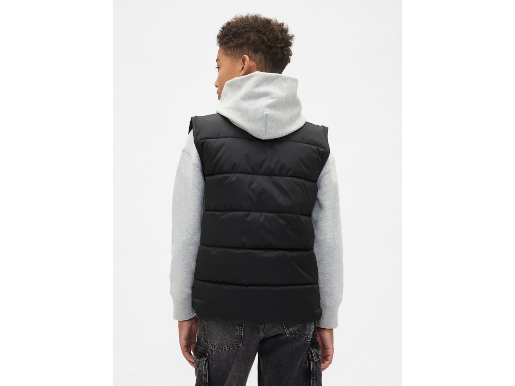 Chlapčenská prešívaná vesta s logom Gap je ideálna pre prechodné obdobie, kedy potrebujete dodať outfitu teplo bez toho, aby obmedzovala v pohybe. Prešívaný povrch s vodoodpudivou úpravou chráni pred ľahkým dažďom, zatiaľ čo výplň zo 100% recyklovaného materiálu Wellon – ľahkého, nadýchaného syntetického vlákna s vlastnosťami podobnými periu – zaisťuje spoľahlivú izoláciu, je priedušná, rýchloschnúca a bez živočíšneho pôvodu. Vesta má stojačik, zapínanie na zips po celej dĺžke, bezrukávový strih a praktické bočné vrecká všité do švov. Na hrudi je umiestnené klasické logo Gap. Rovný, uvoľnený strih siaha pod bokmi a ľahko sa vrství.Dodatočné parametre