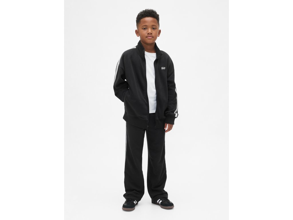 Chlapčenská tepláková bunda z mäkkej bavlnenej zmesi spája pohodlie, štýl a udržateľnosť v jednom. Mäkká, ale odolná zmes s podielom 21% recyklovaného polyesteru pomáha šetriť prírodné zdroje a zároveň zaručuje príjemné nosenie po celý deň. Stojačik, praktické zapínanie na zips a kontrastné pruhy na rukávoch vytvárajú športový vzhľad inšpirovaný retro estetikou. Šikmé vrecká a ikonické oblúkové logo GAP na hrudi dopĺňajú funkčný a nadčasový dizajn. Relaxed strih s voľnejšími rukávmi a dĺžkou ku bedrám ponúka pohodlie bez obmedzenia. Pre užší strih odporúčame zvoliť o číslo menšiu veľkosť.Dodatočné parametre
