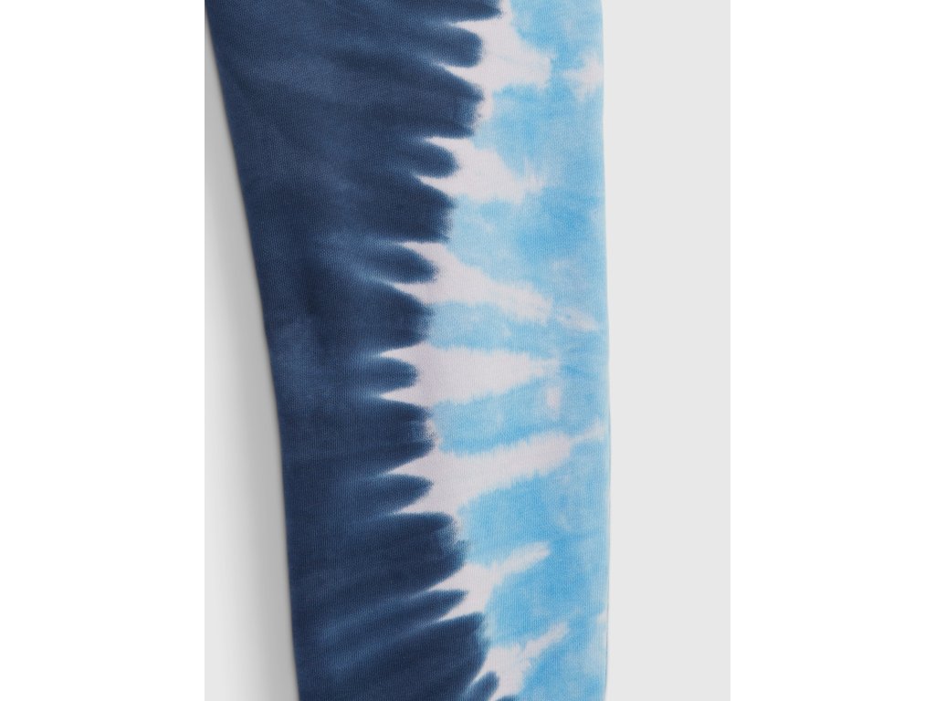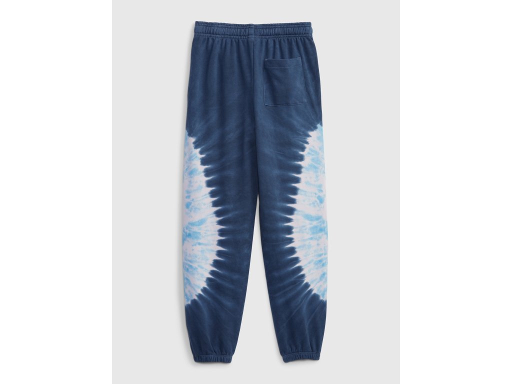Detské tepláky s výraznou batikou. Materiál French Terry. Pružný pás so sťahovacou šnúrkou. Predné šikmé vrecká. 23% recyklovaného polyesteru.Dodatočné parametre