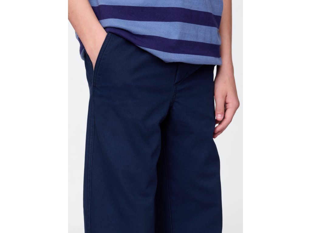 Chlapčenské nohavice v jogger štýle sú navrhnuté pre každodenné pohodlie a voľnosť pohybu. Ušité z mäkkého a pružného bavlneného kepru, ktorý je príjemný na dotyk a zároveň dostatočne odolný na detské aktivity. Elastický pás s funkčnou šnúrkou uľahčuje obliekanie a umožňuje prispôsobenie podľa potreby. Nohavice majú predné šikmé vrecká, zadné vrecká a pružné lemy na nohaviciach, ktoré zaisťujú pohodlie a športový vzhľad. Súčasť programu Washwell™, ktorý znižuje spotrebu vody pri výrobe. Tento produkt vznikol v továrni zapojenej do iniciatív RISE a P.A.C.E., ktoré podporujú rodovú rovnosť a posilnenie postavenia žien. Strih je uvoľnený po celej dĺžke s mierne zúženými nohavicami.Dodatočné parametre