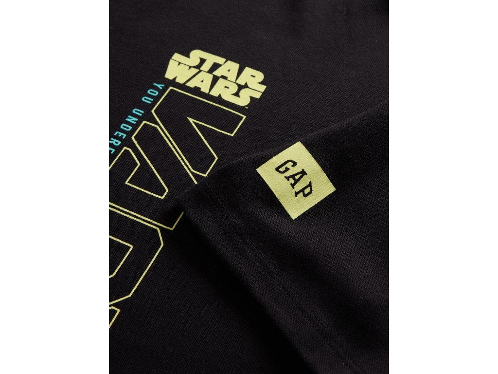 Chlapčenské tričko z mäkkej bavlny s motívom Star Wars je pohodlný kúsok pre malých fanúšikov vesmírnych dobrodružstiev. Vyrobené z jemného bavlneného džerseja, ktorý je mäkký na dotyk, priedušný a ideálny na každodenné nosenie – či už do školy, na ihrisko alebo na domáci relax. Tričko má klasický okrúhly výstrih, krátke rukávy a oversize strih, ktorý poskytuje voľnosť pohybu a moderný, ležérny vzhľad. Prednú stranu zdobí výrazná grafika s motívmi Star Wars, ktorá prináša dávku akcie a fantázie, zatiaľ čo decentné logo Gap na rukáve dodáva tričku ikonický štýlový detail. Vyrobené vo výrobnom závode zapojenom do programov RISE a P.A.C.E. spoločnosti Gap Inc., ktoré podporujú rodovú rovnosť a pomáhajú pracovníkom v odevnom priemysle rozvíjať zručnosti, sebadôveru a profesionálnu odolnosť. Voľný oversize, pohodlný strih siahajúci ku bedrám. Tričko, ktoré spája mäkkosť, legendárny štýl a zodpovednú výrobu - ideálny doplnok do šatníka každého malého fanúšika Star Wars. Ak preferujete užší strih, odporúčame zvoliť o jednu až dve veľkosti menšie.Viac z kolekcie Gap & Star Wars > .