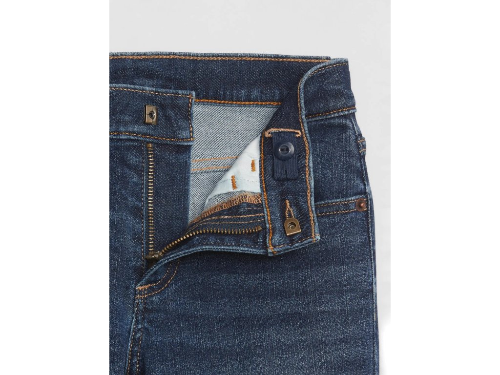 Detské džínsy. Úzky skinny strih. Pevný pás s pútkami na opasok. Zapínanie na zips a gombík alebo háčik. Strih s 5 vreckami. Zámerne obnosený vzhľad.Dodatočné parametre