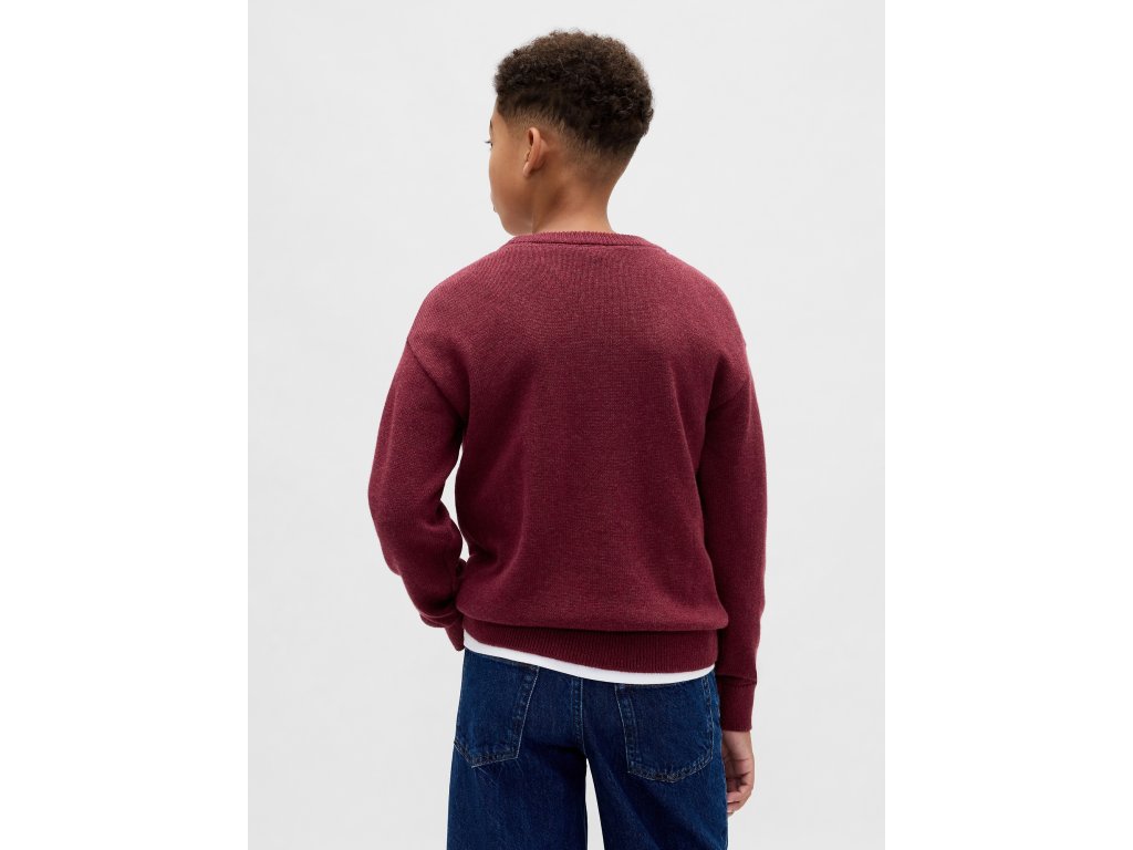 Chlapčenský sveter je upletený z mäkkej bavlny, ktorá je príjemná na nosenie a ideálna pre každý deň. Má okrúhly výstrih, dlhé rukávy so spadnutými ramenami a rebrované manžety, spodný lem je tiež rebrovaný pre lepšie držanie tvaru. Vyrobené v továrni zapojenej do programu RISE, ktorý podporuje rodovú rovnosť a posilnenie postavenia žien. Strih Relaxed je rovný a voľnejší, siaha do úrovne bokov. Pokiaľ preferujete užší strih, odporúčame zvoliť o jednu veľkosť menšiu.Dodatočné parametre