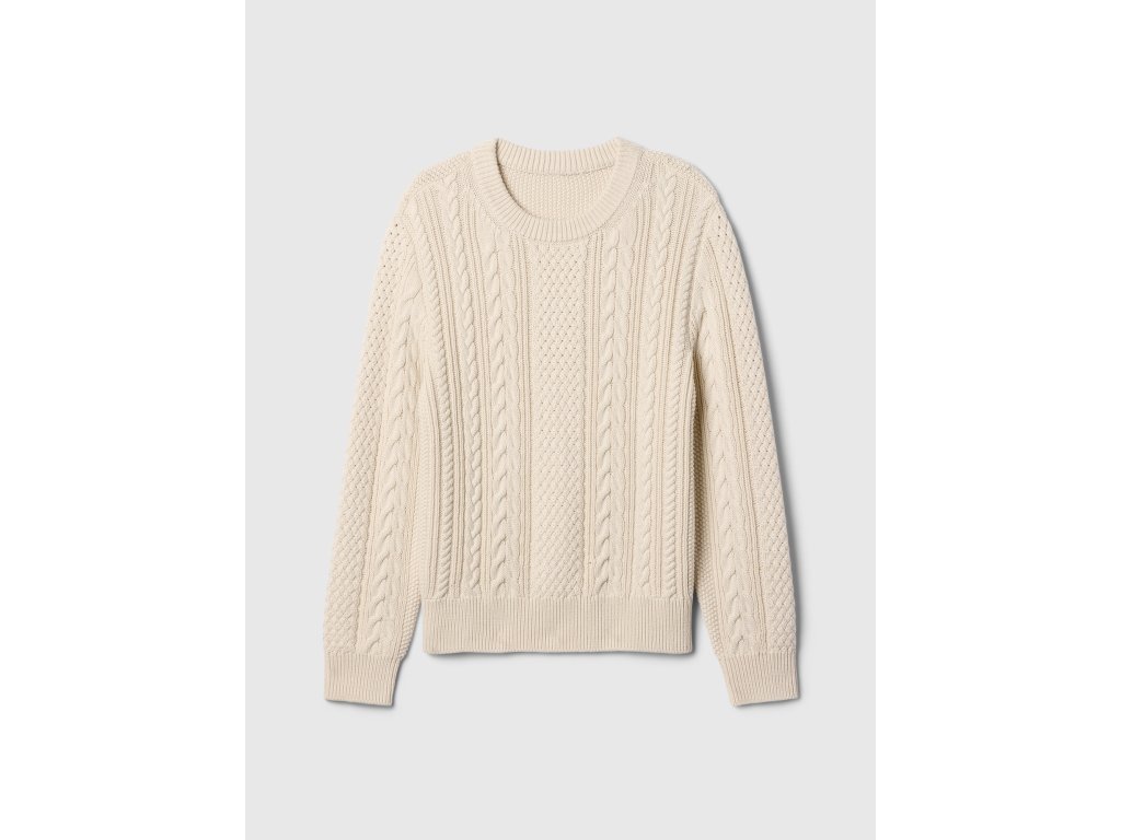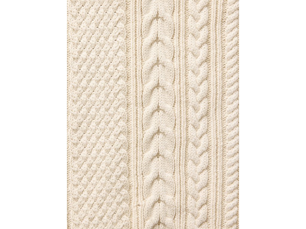 Štýlový sveter z mäkkej bavlnenej priadze, zdobený nadčasovým vrkôčikovým vzorom, ktorý spája eleganciu a pohodlie. Má okrúhly výstrih, dlhé rukávy a rebrovaný lem. Rovný, pohodlný strih robí zo svetra univerzálny kúsok. Skvelý na každodenné nosenie aj vrstvenie počas chladnejších dní. Perfektná voľba pre klasický a upravený vzhľad.Dodatočné parametre