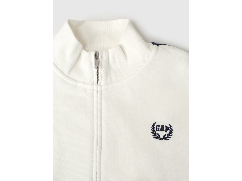 Dámska športová bunda z mäkkého French terry materiálu s bavlnenou zmesou kombinuje pohodlie a štýl. Obsahuje 23% recyklovaného polyesteru, čo prispieva k šetrnejšiemu využívaniu zdrojov a udržateľnejšiemu prístupu k výrobe. Bunda má stojačik, zapínanie na zips po celej dĺžke a dlhé rukávy s voľne strihanými ramenami. Panely s pruhmi na rukávoch dodávajú športový a moderný vzhľad. Na hrudi je umiestnené logo Gap, ktoré dopĺňa design. Praktické šikmé vrecká na bokoch poskytujú priestor na drobnosti, zatiaľ čo elastický lem zaisťuje pohodlné prispôsobenie. Relax strih bundy ponúka rovnú a uvoľnenú siluetu, ktorá siaha k bokom. Ideálna voľba pre voľnočasové aktivity, cestovanie alebo každodenné outfity, ktorá spája funkčnosť, štýl a zodpovednosť voči životnému prostrediu. Pokiaľ preferujete užší strih, odporúčame zvoliť o jednu veľkosť menšiu. Modelky vo veľkosti Gap S meria 172–180 cm, majú obvod pása 60–66 cm a boky 84–97 cm. Modelky vo veľkosti Gap XL meria 172–180 cm, majú obvod pása 86–91 cm a boky 114–127 cm.Dodatočné parametre
