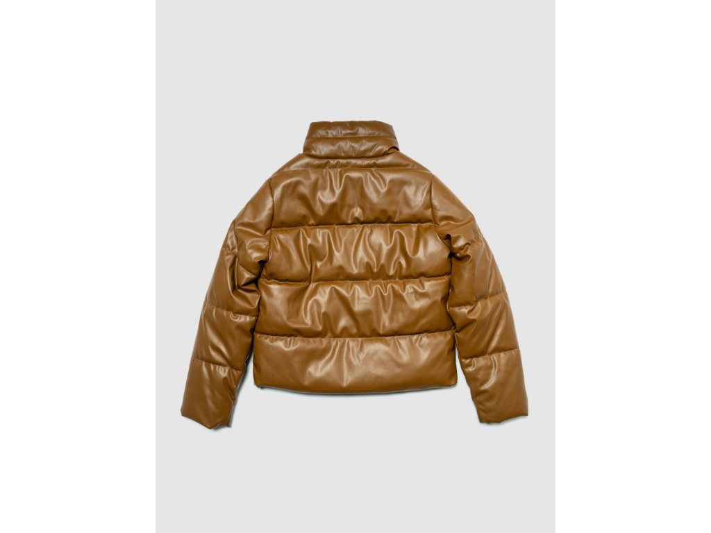 Dámska prešívaná bunda z umelej kože. 100% recyklovaná výplň. Dlhé rukávy. Zapínanie na patentky. Predné šikmé vrecká. Široký a kratší strih.Dodatočné parametre