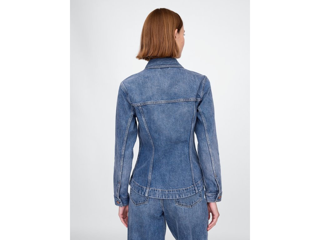 Klasická džínsová bunda z pevného denimu bez elastanu je jedinečným kúskom pre milovníčky nadčasového štýlu. S golierom, gombíkovým zapínaním a dlhými rukávmi zakončenými manžetami na gombíky spája nenútenú ležérnosť s eleganciou. Praktické našité vrecká na prednej strane podčiarkujú jej ikonický vzhľad. Bunda je súčasťou programu Washwell, vďaka ktorému sa pri výrobe spotrebuje o 20 % menej vody ako bežnými metódami. Obsahuje 5% recyklovanej bavlny, čím prispieva k zníženiu spotreby nových surovín aj odpadu. Výroba prebieha v továrňach, ktoré podporujú rodovú rovnosť a posilňujú postavenie žien prostredníctvom programov RISE a P.A.C.E., zameraných na rozvoj zručností a sebavedomia. Strih bundy je precízne navrhnutý tak, aby sedel tesne na tele, s dĺžkou siahajúcou do oblasti bokov, čo zvýrazňuje siluetu a dodáva sofistikovaný vzhľad. Modelka s veľkosťou S meria 172–180 cm, zatiaľ čo veľkosť XL je ideálna pre postavy s proporciami 86–91 cm v páse a 114–127 cm cez boky.Dodatočné parametre