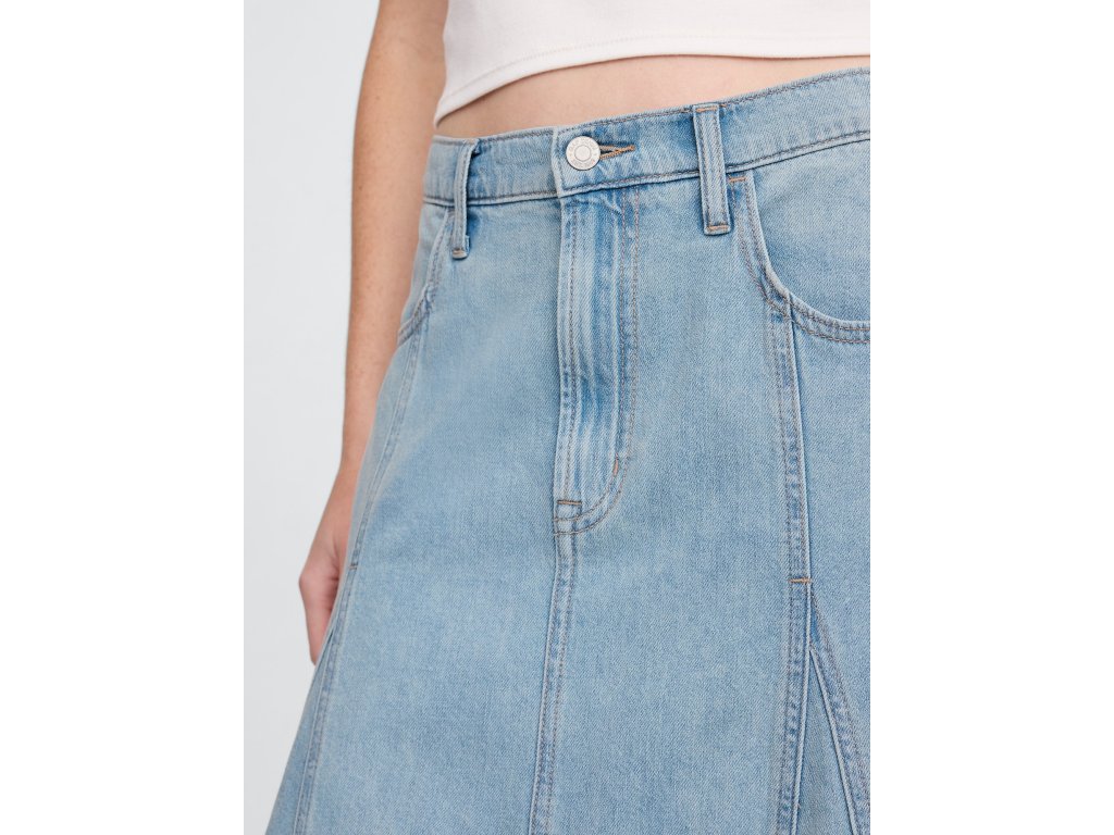 Dámska džínsová sukňa vo svetlom indigovom odtieni s jemným efektom vyšúchania kombinuje nadčasový štýl s pohodlím. Vyrobená z pevnej džínsoviny bez streče, ktorá drží tvar a poskytuje autentický denimový vzhľad. Má stredne vysoký pás, pohodlný strih v oblasti bokov a stehien a dĺžku ku členkom. Zapínanie na gombík a zips zaisťuje ľahké obliekanie, zatiaľ čo predné šikmé vrecká a detailné švy dodávajú prepracovaný vzhľad. Spodný nezačistený surový lem pridáva moderný nádych. Tento model je vyrobený z 5% recyklovanej bavlny, čo pomáha znižovať spotrebu nových surovín a obmedzovať odpad. Je súčasťou programu Washwell, ktorý pri výrobe denimu používa o 20% menej vody ako bežné metódy prania. Od roku 2016 sme vďaka tomuto programu ušetrili viac ako miliardu litrov vody.Dodatočné parametre