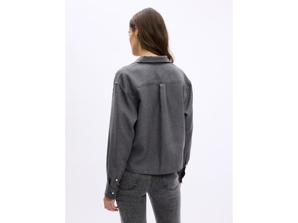 Dámska košeľa. Krátky a rovný strih. Dlhé rukávy s manžetou. Zapínanie na gombíky.Dodatočné parametre