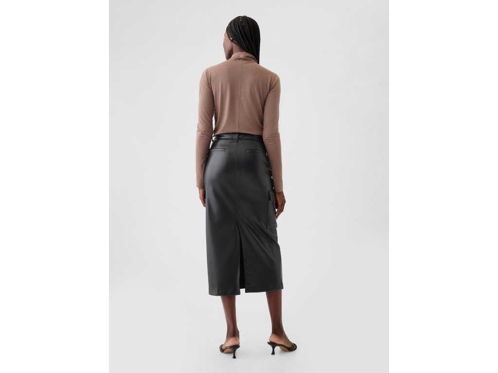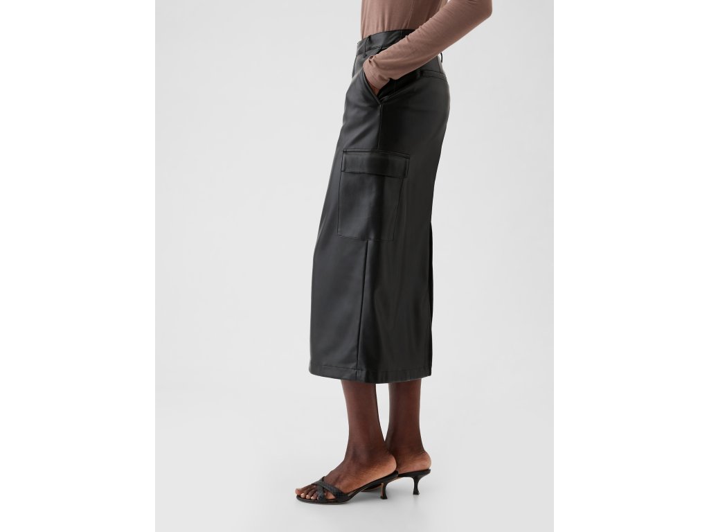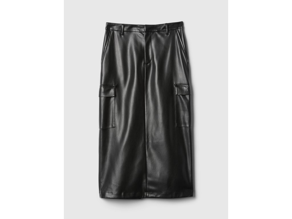 Objavte luxusnú midi sukňu z mäkkej vegánskej kože. Zapínanie na gombík a zips. Praktické zadné a bočné cargo vrecká pridávajú funkčnosť, ktorú si zamilujete. Rozparok na zadnom leme zaisťuje elegantný detail. Tento slim strih puzdrovej siluety krásne tvaruje pás a boky a vytvára dokonalú ženskú siluetu. Sukňa má dĺžku pod kolená, čo z nej robí ideálnu voľbu pre akúkoľvek príležitosť, od kancelárie až po večeru. Táto sukňa je navrhnutá tak, aby sedela každej žene, bez ohľadu na jej jedinečné tvary.Dodatočné parametre