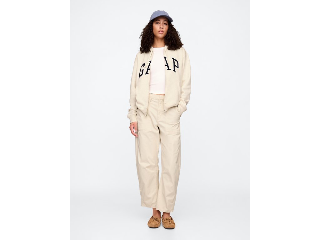 Štýlová a pohodlná dámska mikina, ideálna na každodenné nosenie aj chladnejšie dni. Vyrobená z mäkkého a hrejivého fleecu, ktorý poskytuje maximálny komfort. Mikina má dlhé raglánové rukávy zakončené rebrovanými manžetami, sťahovacie šnúrky pri kapucni a zapínanie na zips po celej dĺžke. Prednú stranu zdobí ikonické logo Gap, zatiaľ čo praktické vrecká ponúkajú miesto na drobnosti alebo zahriatie rúk. Rebrovaný spodný lem zaisťuje lepšie priľnutie a drží tvar. Rovný a voľný strih mikiny perfektne padne a dĺžka ľahko pod bokmi poskytuje ideálne pokrytie. Skvelý kúsok na prechádzky, víkendové výlety alebo leňošenie doma – ľahko ju skombinujete s džínsami, legínami alebo teplákmi.Dodatočné parametre