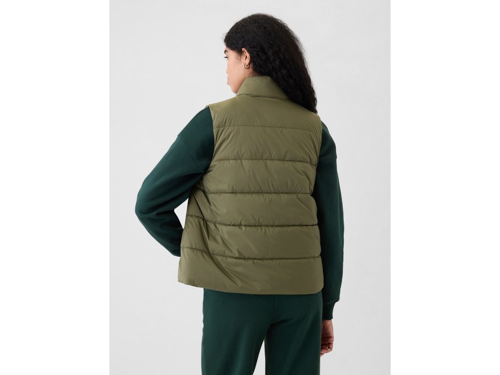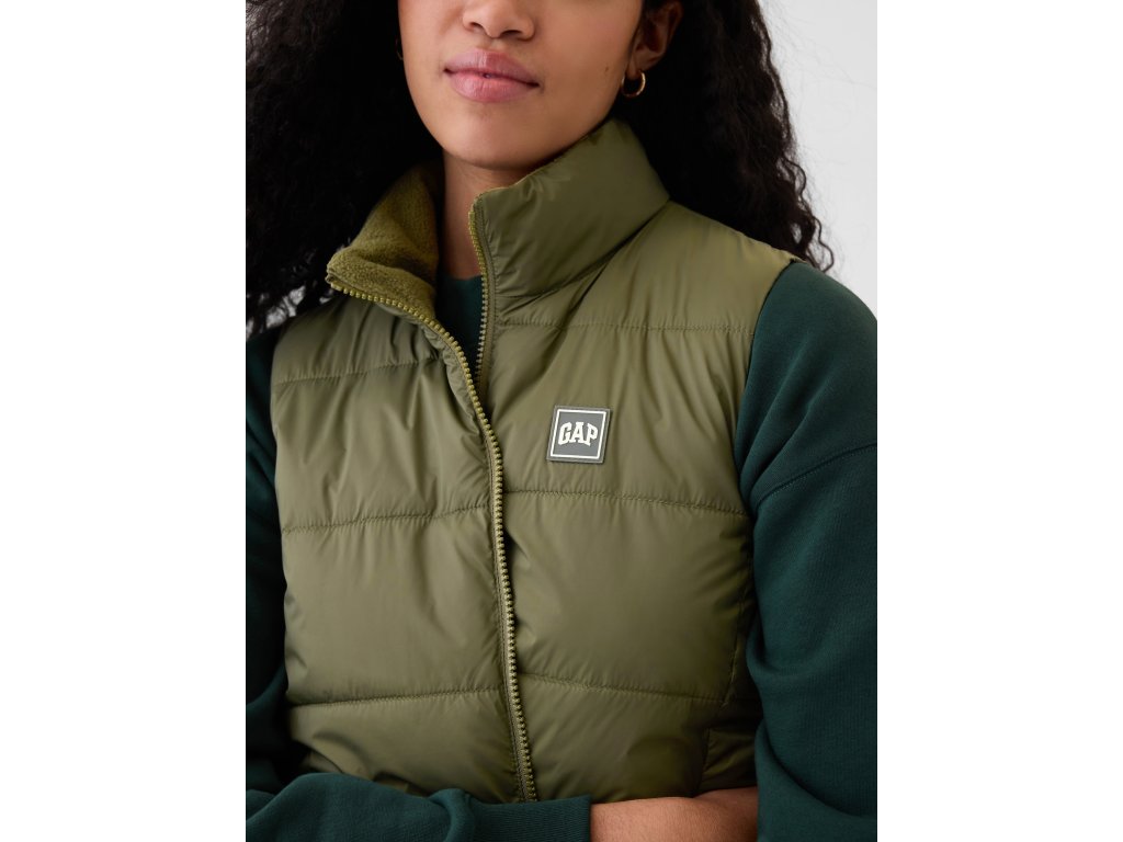 Štýlová vesta navrhnutá tak, aby vás udržala v teple a suchu aj v chladnejšom počasí. Vyrobená z vodeodolného prešívaného materiálu ponúka spoľahlivú ochranu pred vlhkosťou. Vesta je bez rukávov, čo umožňuje ľahké vrstvenie. Stojačik a zapínanie na zips pomáhajú udržať teplo. Logo Gap na hrudi. Predné praktické vrecká. Vesta je vyplnená 100% recyklovanou výplňou Wellon - ľahký a teplý ekologický materiál šetrný k životnému prostrediu. Rovný a pohodlný strih.Dodatočné parametre
