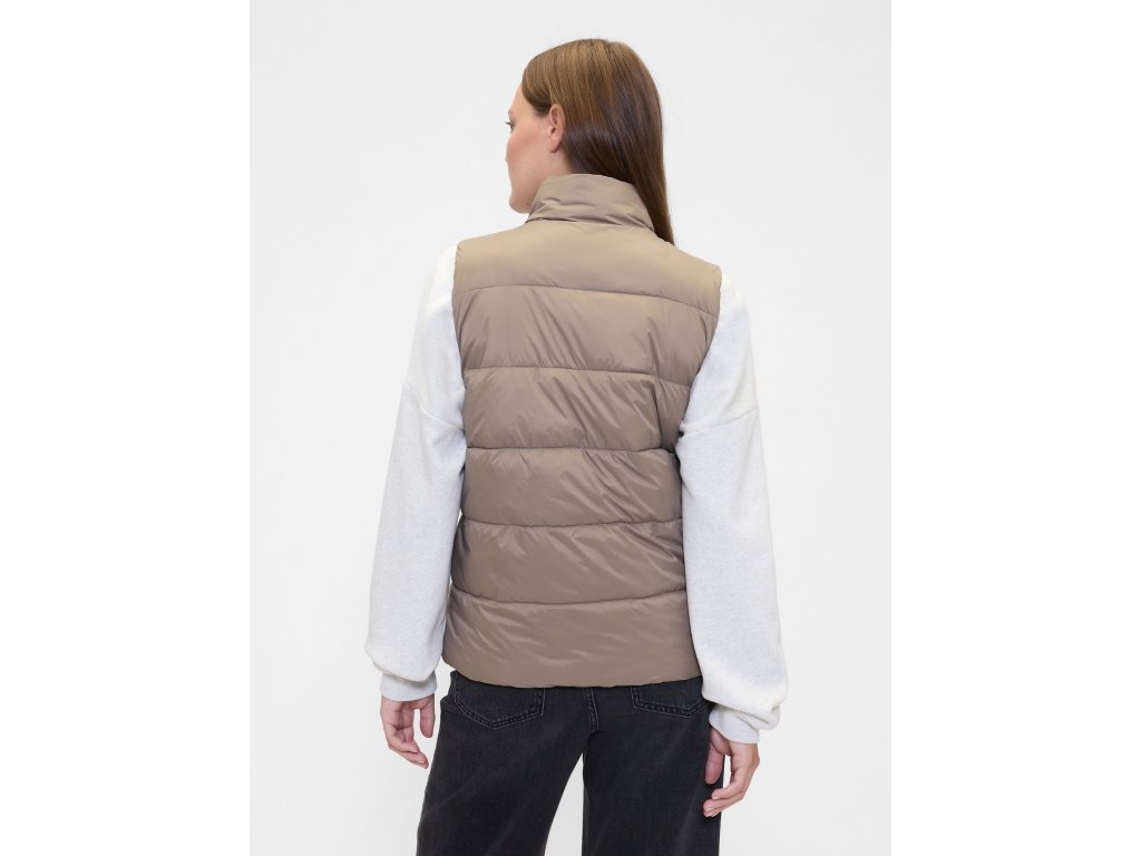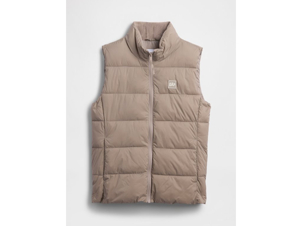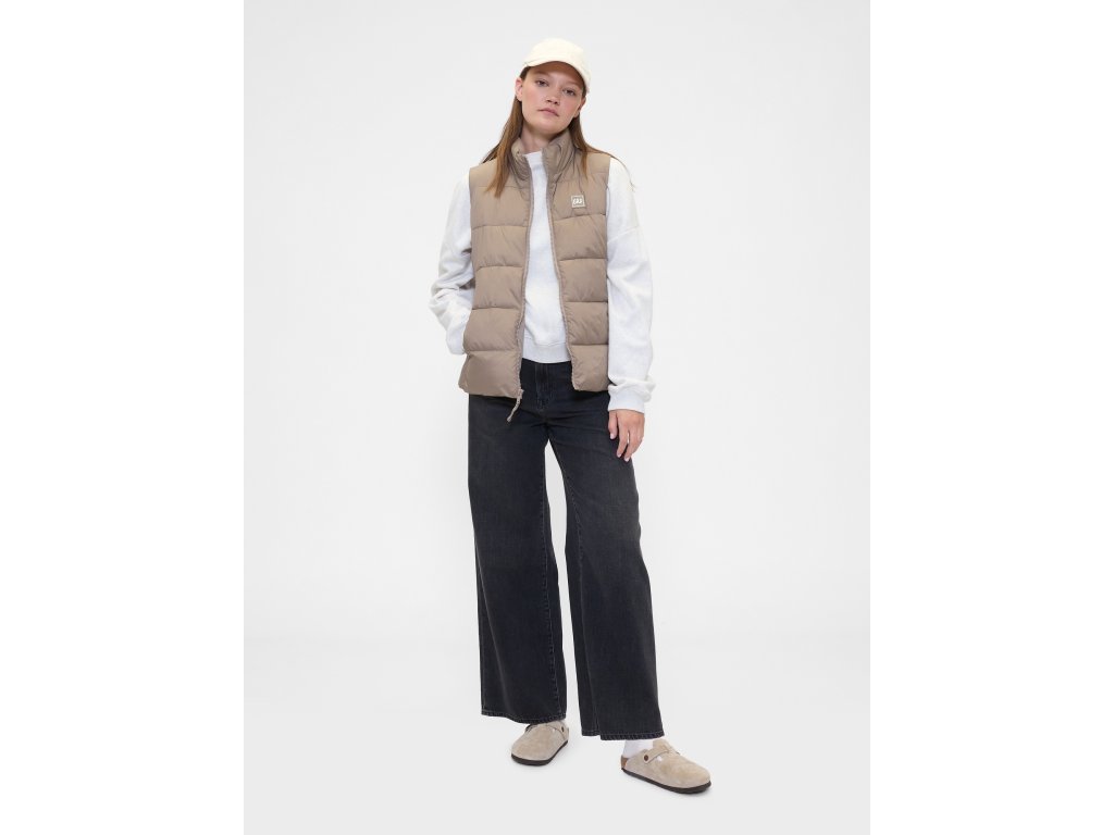 Dámska prešívaná vesta kombinuje ľahkosť, hrejivosť a praktickosť - ideálna na každodenné nosenie aj vrstvenie v prechodnom počasí. Vyrobená z odolného vodoodpudivého materiálu, ktorý chráni pred vlhkosťou a vetrom. Výplň tvorí 100% recyklovaný wellon – ľahké syntetické vlákno s vlastnosťami podobnými prachovému periu, ktoré výborne izoluje, je priedušné a zaisťuje pohodlie bez zbytočnej hmotnosti. Stojačik chráni krk pred chladom, vsadené vrecká zahrejú ruky a zapínanie na zips uľahčuje obliekanie. Na hrudi decentné logo Gap pre športovo ladený vzhľad. Rovný strih s pohodlným padnutím siaha ku bedrám.Dodatočné parametre