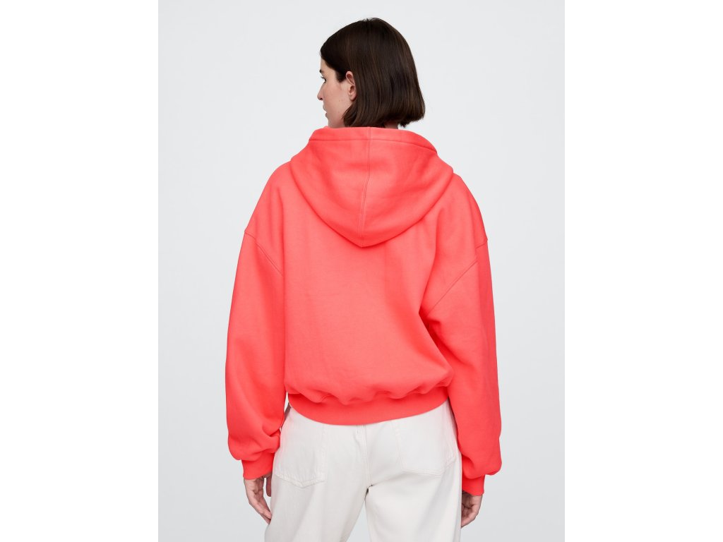 Dámska skrátená mikina s kapucňou z mäkkého fleecu a bavlnenej zmesi je moderným a pohodlným kúskom pre každodenný štýl. Mikina má kapucňu, dlhé rukávy s nízko posadenými ramenami a rebrované manžety, ktoré zaisťujú pohodlie a dotvárajú uvoľnený vzhľad. Na prednej strane ju zdobí ikonické logo Gap. Rebrovaný spodný lem zvýrazňuje skrátený strih siahajúci do pása, zatiaľ čo oversize strih poskytuje voľnosť a maximálne pohodlie. Mikina je vyrobená z 23% recyklovaného polyesteru, čo prispieva k znižovaniu spotreby zdrojov a odpadu. Tento produkt bol vytvorený vo výrobni, ktorá podporuje rodovú rovnosť a posilnenie postavenia žien prostredníctvom programov RISE a P.A.C.E. od Gap Inc. Pre užší strih odporúčame zvoliť o jednu až dve veľkosti menšie. Modelky vo veľkosti S meria 172–180 cm, majú obvod pása 60–66 cm a boky 84–97 cm. Modelky vo veľkosti XL meria 172–180 cm, majú obvod pása 86–91 cm a boky 114–127 cm.Dodatočné parametre