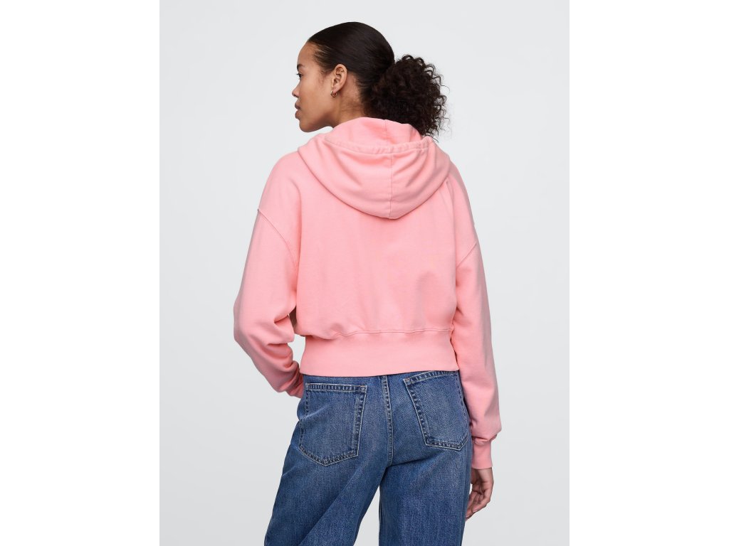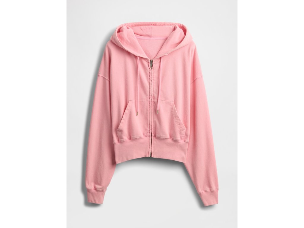 Dámska oversize mikina s kapucňou a zipsom v ľahko skrátenom strihu prináša kombináciu štýlu, pohodlia a praktických detailov, vďaka ktorým sa skvele hodí na voľné dni aj vrstvenie počas chladnejších večerov. Mäkký, priedušný materiál poskytuje celodenný komfort, zatiaľ čo voľnejší strih dodáva moderný, uvoľnený vzhľad. Mikina je ušitá z ťažšej francúzskej froté teplákoviny s 8% podielom recyklovaného polyesteru. Vnútorná strana je jemne štruktúrovaná pre ešte väčšie pohodlie, zatiaľ čo vonkajší povrch zostáva hladký a príjemný na dotyk. Výsledná zmes ponúka odolnosť, priedušnosť aj príjemný pocit pri nosení. Praktická kapucňa so sťahovacími šnúrkami, zapínanie na zips po celej dĺžke a klokanie vrecká na uloženie drobností alebo zahriatiu rúk dopĺňajú funkčnú výbavu. Dlhé rukávy s nízko posadenými ramenami podčiarkujú ležérny vzhľad, zatiaľ čo rebrovaný lem drží tvar a zároveň pôsobí ako štýlový detail. Vďaka 8% recyklovaného polyesteru ide o udržateľnejšiu voľbu, ktorá pomáha znižovať spotrebu nových surovín a množstvo odpadu. Oversize strih je voľný cez telo a ideálny na vrstvenie. Ľahko skrátená dĺžka siaha nad bokmi. Modelky vo veľkosti S meria 172–180 cm, majú pás 60–66 cm a boky 84–97 cm. Modelky vo veľkosti XL meria 172–180 cm, majú pás 86–91 cm a boky 114–127 cm. Pokiaľ preferujete užší strih, odporúčame zvoliť o 1–2 veľkosti menšie.Dodatočné parametre