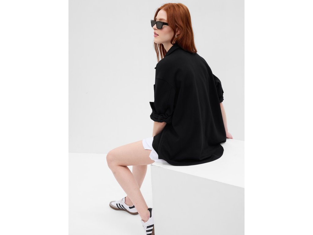 Mäkká košeľová bunda z bavlnenej zmesi v oversize strihu, ktorá prináša dokonalú kombináciu štýlu a pohodlia. Vďaka golieru a dlhým rukávom s gombíkovými manžetami pôsobia elegantne a uvoľnene zároveň. Predné gombíkové zapínanie a praktické náprsné vrecko dodávajú bunde klasický, ale moderný vzhľad. Tento kúsok je farbený a praný špeciálnou technikou na dosiahnutie extra hebkosti. Hrejivá a útulná podšívka. Bunda má rovný oversize strih. Dĺžka končí pri bokoch. Pokiaľ preferujete užší strih, zvoľte o číslo menšiu veľkosť. Modelky vo veľkosti S (Gap) majú výšku 172–180 cm, pás 60–66 cm a boky 84–97 cm. Modelky vo veľkosti XL (Gap) majú výšku 172–180 cm, pás 86–91 cm a boky 114–127 cm.Dodatočné parametre