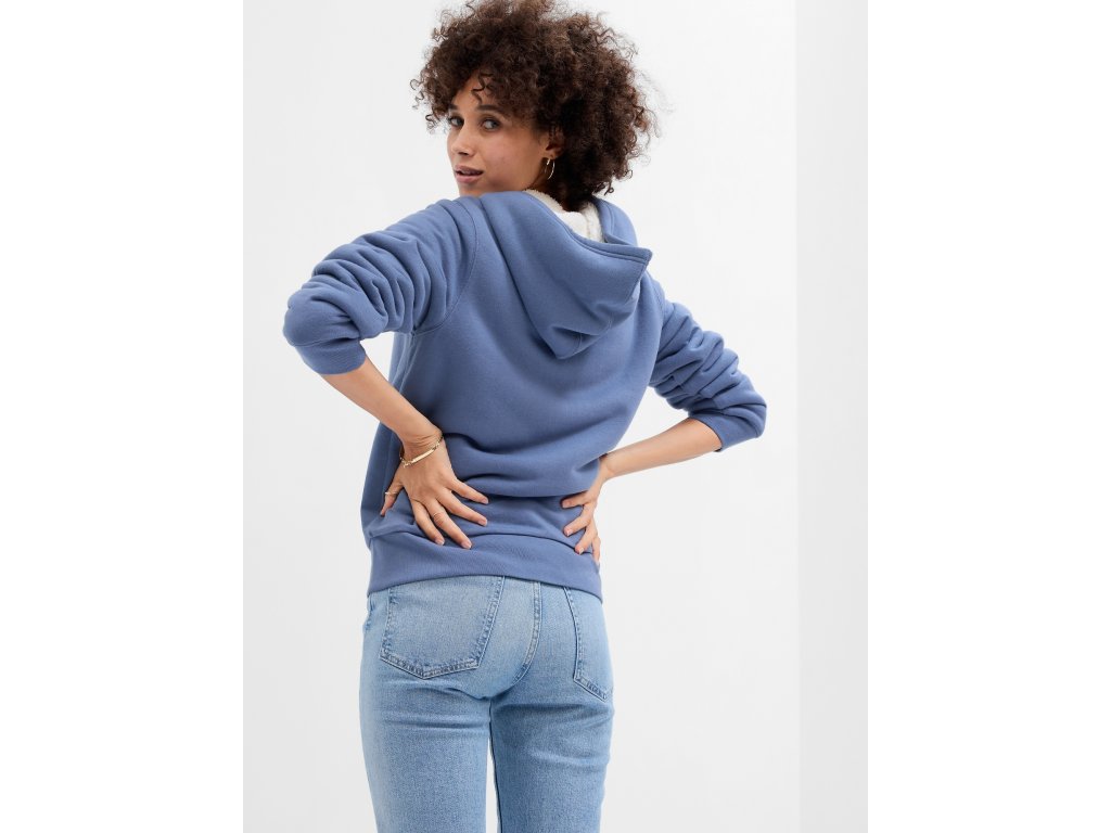 Dámska zateplená mikina Na vnútornej strane umelý baránok Kapucňa s kožúškom Výrazné logo Gap Zapínanie na zips a klokanie vrecko Široké a pružné náplety.Dodatočné parametre