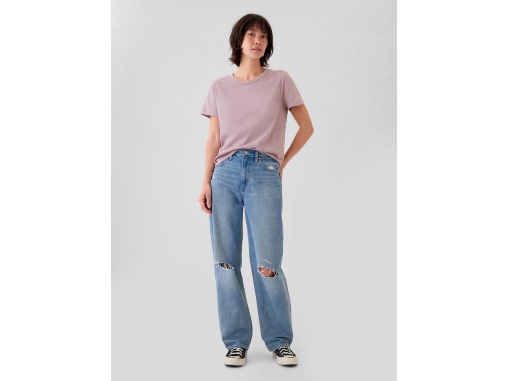 Dámske bavlnené basic tričko. Okrúhly výstrih. Krátke rukávy. Klasický rovný a pohodlný strih. Dĺžka do bokov. Vyrobené zo 100% organicky pestovanej bavlny. Modelky nosiacej veľkosť S od značky Gap meria 172–180 cm a majú 60–66 cm v páse a 84–97 cm cez boky. Modelky nosiace veľkosť XL od značky Gap meria 172–180 cm a majú 86–91 cm v páse a 114–127 cm cez boky.Dodatočné parametre