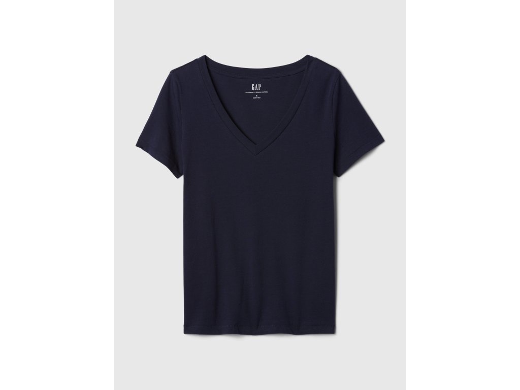 Dámske bavlnené basic tričko. Výstrih v tvare V. Krátke rukávy. Rovný uvoľnený strih. Dĺžka do bokov. Vyrobené zo 100% organicky pestovanej bavlny. Modelka meria 177 cm a má 79 cm cez prsia, 61 cm v páse a 89 cm cez boky, nosia bežnú veľkosť S od značky Gap.Dodatočné parametre