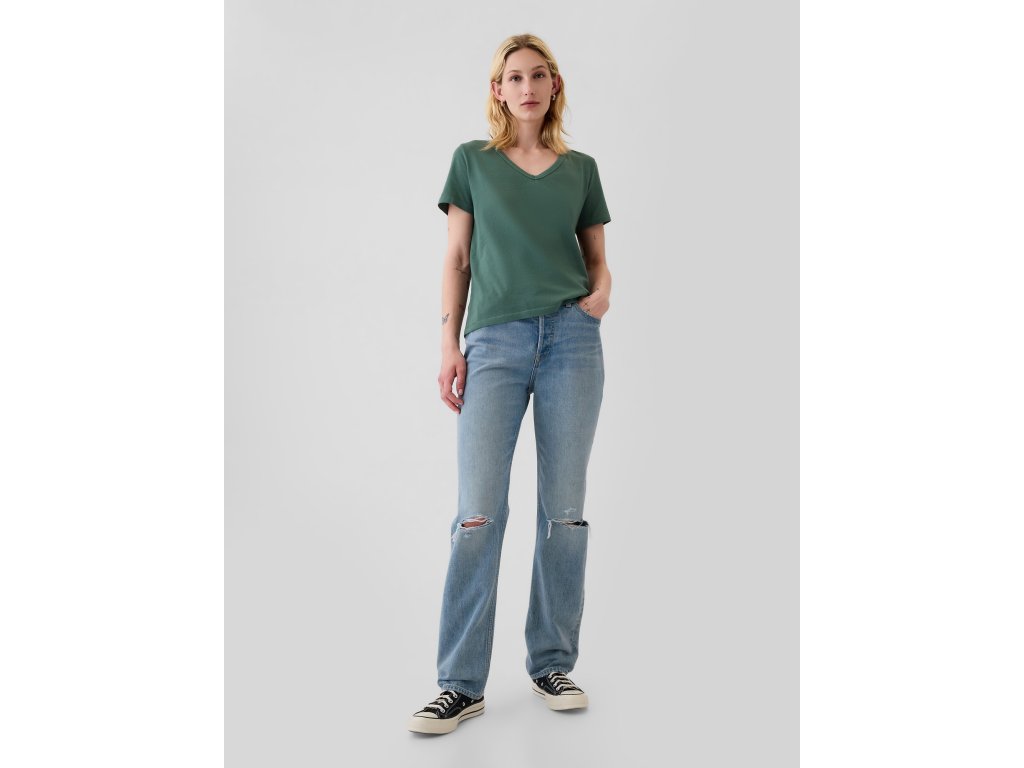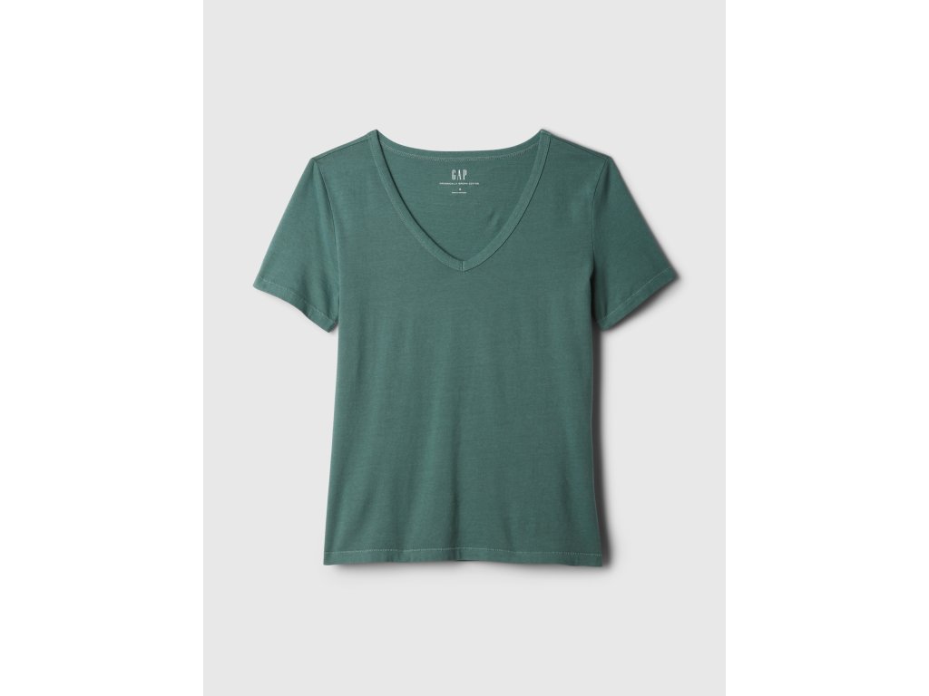 Dámske bavlnené basic tričko. Výstrih v tvare V. Krátke rukávy. Rovný uvoľnený strih. Dĺžka do bokov. Vyrobené zo 100% organicky pestovanej bavlny. Modelka meria 177 cm a má 79 cm cez prsia, 61 cm v páse a 89 cm cez boky, nosia bežnú veľkosť S od značky Gap.Dodatočné parametre