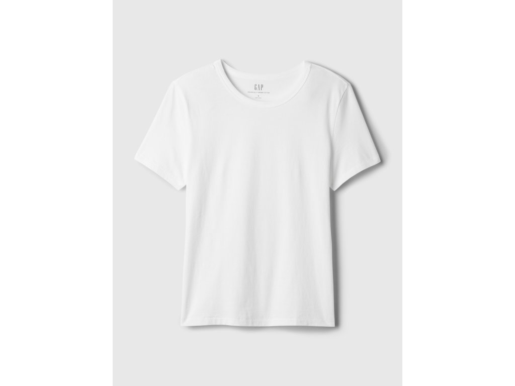 Dámske bavlnené basic tričko. Okrúhly výstrih. Krátke rukávy. Rovný uvoľnený strih. Dĺžka do bokov. Vyrobené zo 100% organicky pestovanej bavlny. Modelka meria 174 cm a má 81 cm cez prsia, 64 cm v páse a 89 cm cez boky, nosia bežnú veľkosť S od značky Gap.Dodatočné parametre