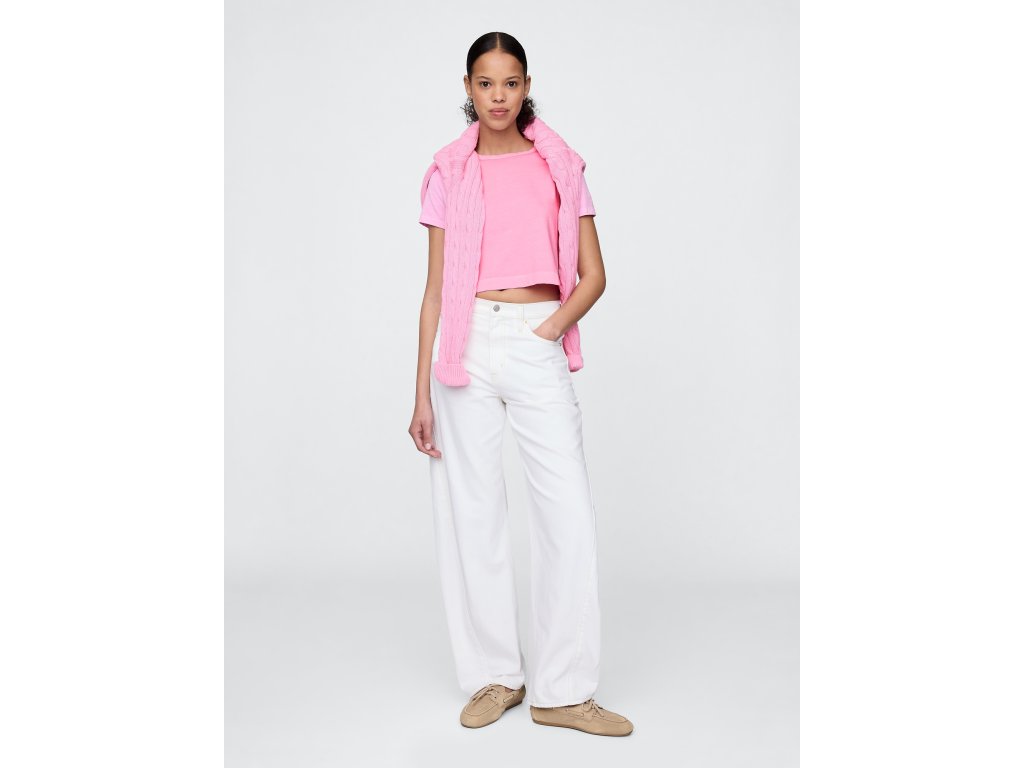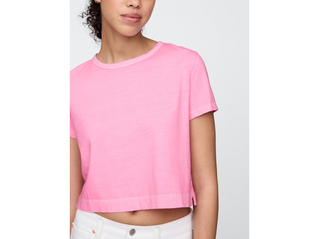 Dámske ultra-krátke tričko z mäkkej 100% organicky pestovanej bavlny je štýlovým a udržateľným kúskom pre váš šatník. Bavlna, pestovaná bez použitia syntetických pesticídov a hnojív, je šetrnejšia k ľuďom aj životnému prostrediu. Tričko má okrúhly výstrih, krátke rukávy a rovný, uvoľnený strih, ktorý pohodlne sedí. Dĺžka siaha k pásu, čo z neho robí ideálnu voľbu pre kombináciu s džínsami s vysokým pásom, šortkami alebo sukňami. Perfektný pre každodenné outfity s dotykom udržateľnosti a pohodlia. Modelky nosiacej veľkosť Gap S merajú 172–180 cm, majú obvod pása 60–66 cm a boky 84–97 cm. Modelky nosiacej veľkosť Gap XL meria 172–180 cm, majú obvod pása 86–91 cm a boky 114–127 cm.Dodatočné parametre