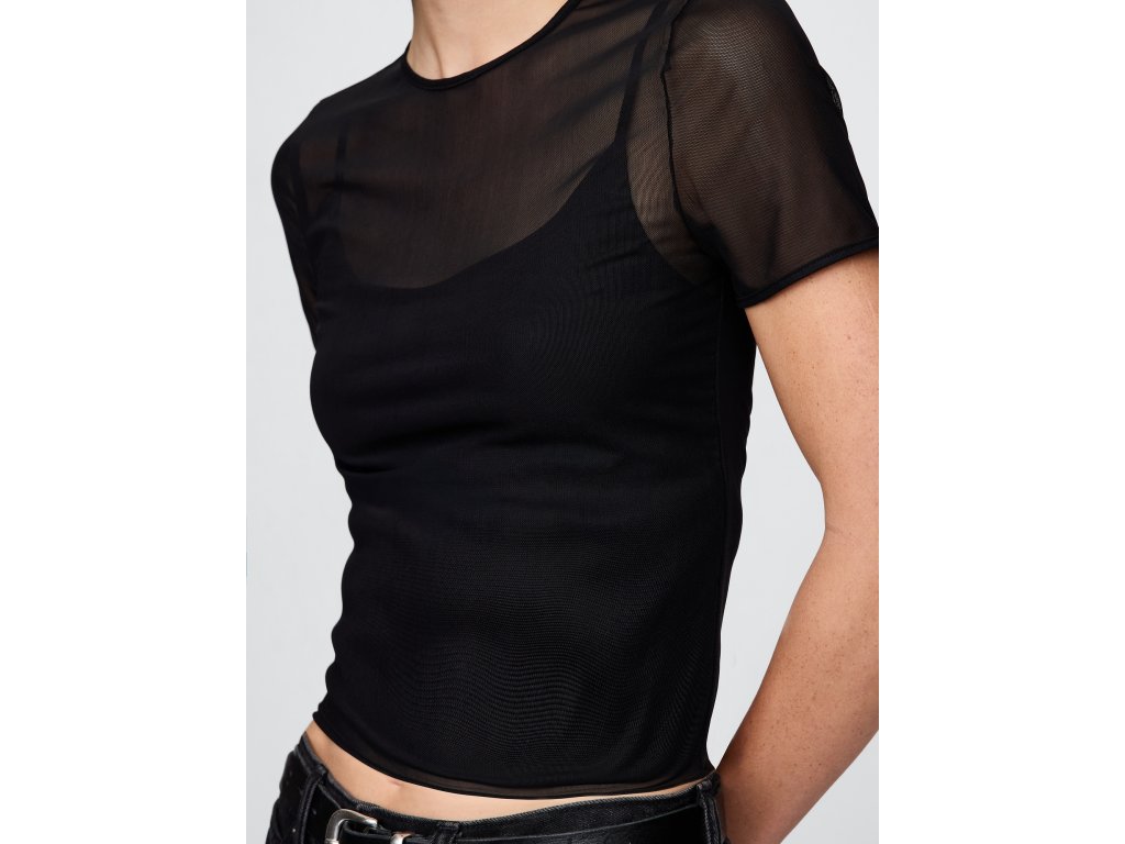 Dámske ultra crop tričko zo strečovej sieťoviny je odvážny a štýlový kúsok, ktorý zvýrazní siluetu a dodá každému outfitu moderný výraz. Ľahká, pružná sieťovina príjemne obopína telo a vytvára hladkú líniu, ktorá sa skvele hodí na vrstvenie alebo samostatné nosenie. Ultra skrátená dĺžka siahajúca nad pás krásne vynikne v kombinácii s nohavicami alebo sukňou s vyšším pásom. Priliehavý strih, okrúhly výstrih a krátke rukávy tvoria čistý základ, ktorý ľahko doplníte podľa nálady – elegantne, športovo aj výrazne. Modelka vo veľkosti S meria 172–180 cm, má obvod pása 60–66 cm a boky 84–97 cm. Modelka vo veľkosti XL má obvod pása 86–91 cm a boky 114–127 cm.Dodatočné parametre