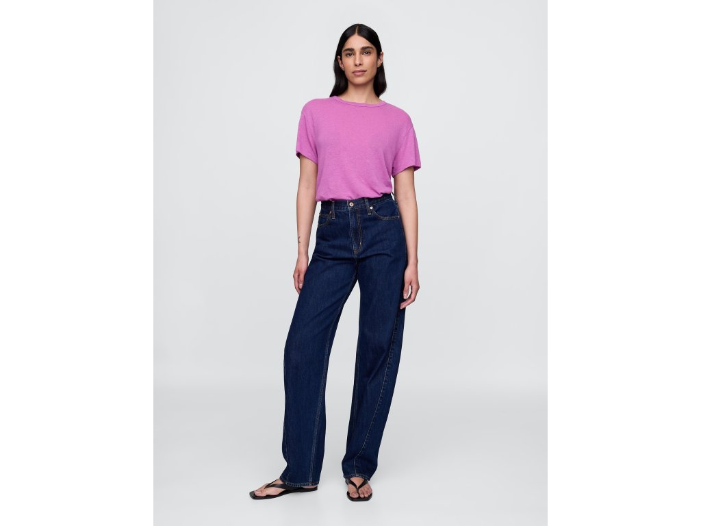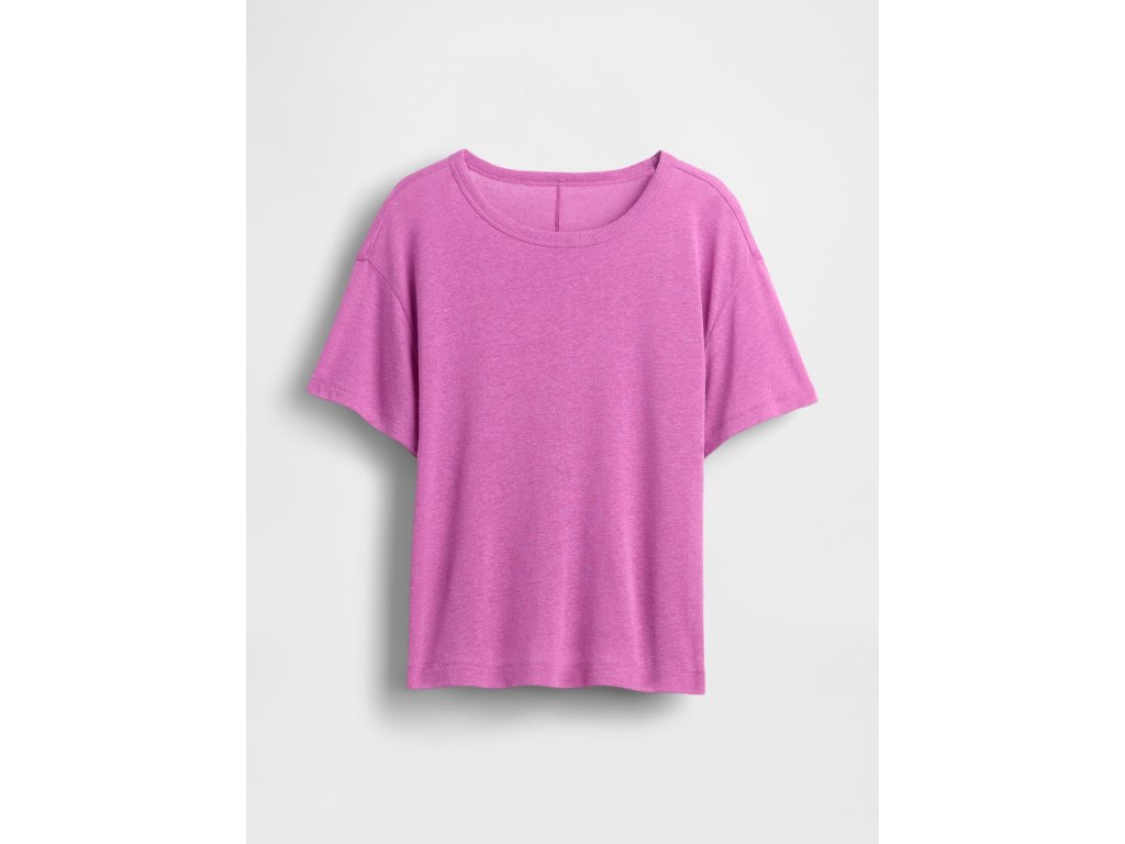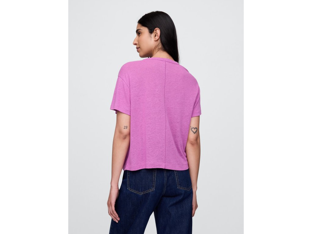 Dámske tričko z ľanovej zmesi so skrátenou dĺžkou spája prirodzený komfort s moderným štýlom. Vyrobené zo starostlivo spracovanej ľanovej zmesi, ktorá kombinuje klasickú štruktúru ľanu s mäkkosťou a splývavosťou pre každodenné pohodlie. Vďaka svojej priedušnosti je ideálnou voľbou na teplejšie dni, či už do mesta alebo na dovolenku. Tričko má okrúhly výstrih a krátke rukávy so spustenými ramenami, ktoré vytvárajú uvoľnenú, nenútenú siluetu. Materiál prirodzene padá a pôsobí vzdušne. Uvoľnený strih (relaxed fit) je rovný a pohodlný po celej dĺžke, zatiaľ čo mierne skrátená dĺžka siaha nad bokmi – ideálna na kombináciu s džínsami s vysokým pásom, sukňami alebo šortkami. Modelky vo veľkosti S meria 172–180 cm, majú pás 60–66 cm a boky 84–97 cm. Modelky vo veľkosti XL majú pás 86-91 cm a boky 114-127 cm. Pokiaľ preferujete užší strih, odporúčame zvoliť o jednu veľkosť menšiu.Dodatočné parametre