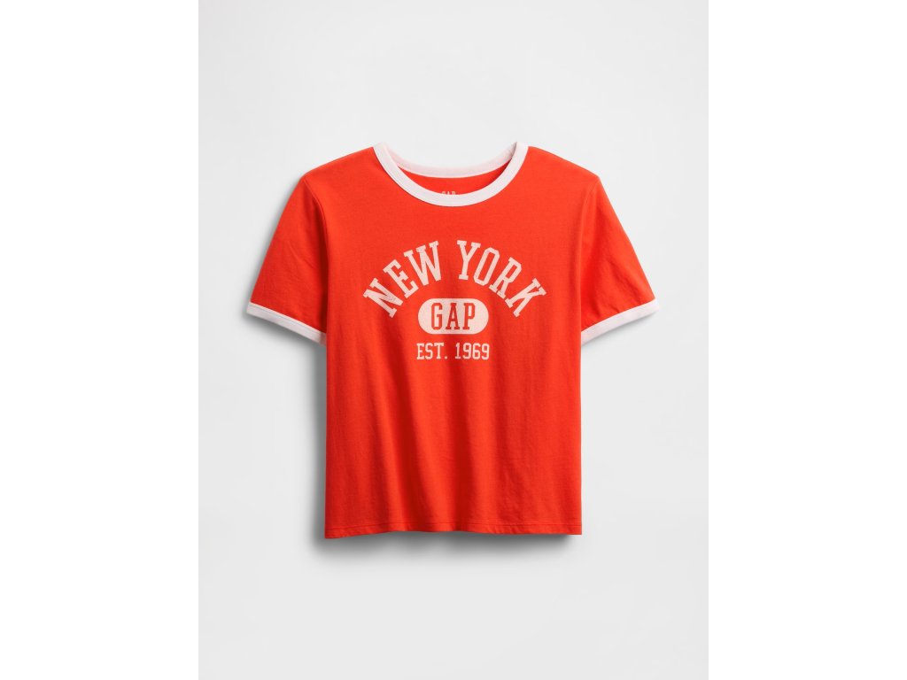 Dámske crop tričko Gap s grafikou je ľahký a štýlový kúsok, ktorý dodá vášmu outfitu svieži, moderný nádych. Vyrobené z mäkkého a priedušného džersejového úpletu, zaisťuje pohodlie počas celého dňa a je ideálny pre voľné chvíle aj ležérne mestské kombinácie. Tričko má klasický okrúhly výstrih, krátke rukávy so spadnutými ramenami a na prednej strane výraznú grafiku, ktorá dodáva osobitý a hravý vzhľad. Vďaka skrátenej dĺžke pôsobí moderne a lichotí postave. Skrátený rovný strih siaha tesne nad bokmi a skvele sa hodí k nohaviciam alebo sukniam s vysokým pásom - výsledkom je vyvážený a štýlový outfit vhodný pre každý deň.Dodatočné parametre