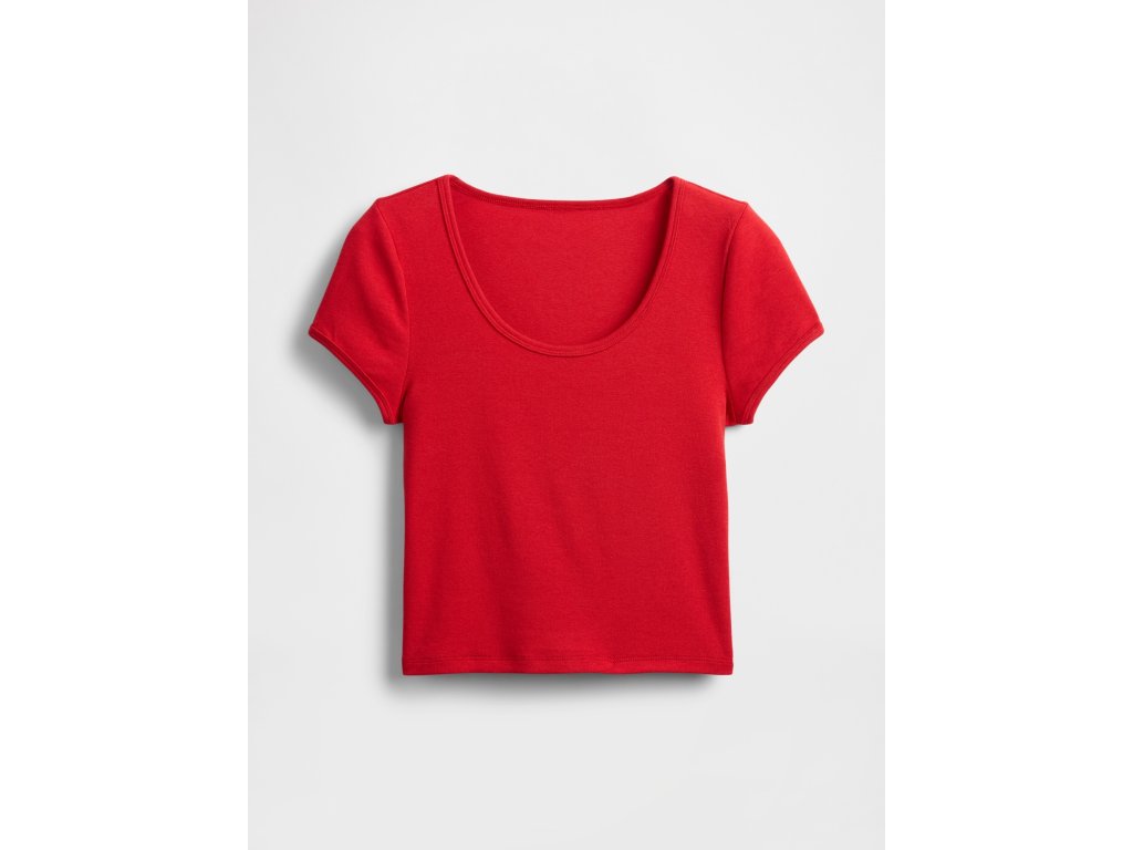 Dámske tričko z extra jemnej zmesi modalu v skrátenom strihu je ľahký a príjemne priliehavý základ šatníka, ideálny na kombinovanie s obľúbenými nohavicami alebo sukňou s vyšším pásom. Zmes bavlny a modalu zaisťuje mimoriadnu hebkosť, pružnosť a priedušnosť, vďaka čomu sa tričko príjemne nosí po celý deň a jemne obopína telo bez pocitu stiahnutia. Okrúhly výstrih a krátke rukávy pôsobia jemne a žensky, zatiaľ čo extra skrátená dĺžka končiaca nad pásom dodáva modernú siluetu, ktorú oceníte ako pri vrstvení, tak pri samostatnom nosení v teplejších dňoch. Vyrobené v továrni zapojenej do programov RISE a P.A.C.E. spoločnosti Gap Inc., ktoré podporujú rodovú rovnosť a investujú do rozvoja zručností, sebavedomia a odolnosti pracovníkov v odevnom priemysle. Stretch-to-Fit strih: priliehavý, prispôsobivý materiál pre lichotivý vzhľad. Ultra skrátená dĺžka siaha nad pás. Modelky vo veľkosti S meria 172–180 cm, majú pás 60–66 cm a boky 84–97 cm. Modelky vo veľkosti XL majú pás 86-91 cm a boky 114-127 cm.Dodatočné parametre