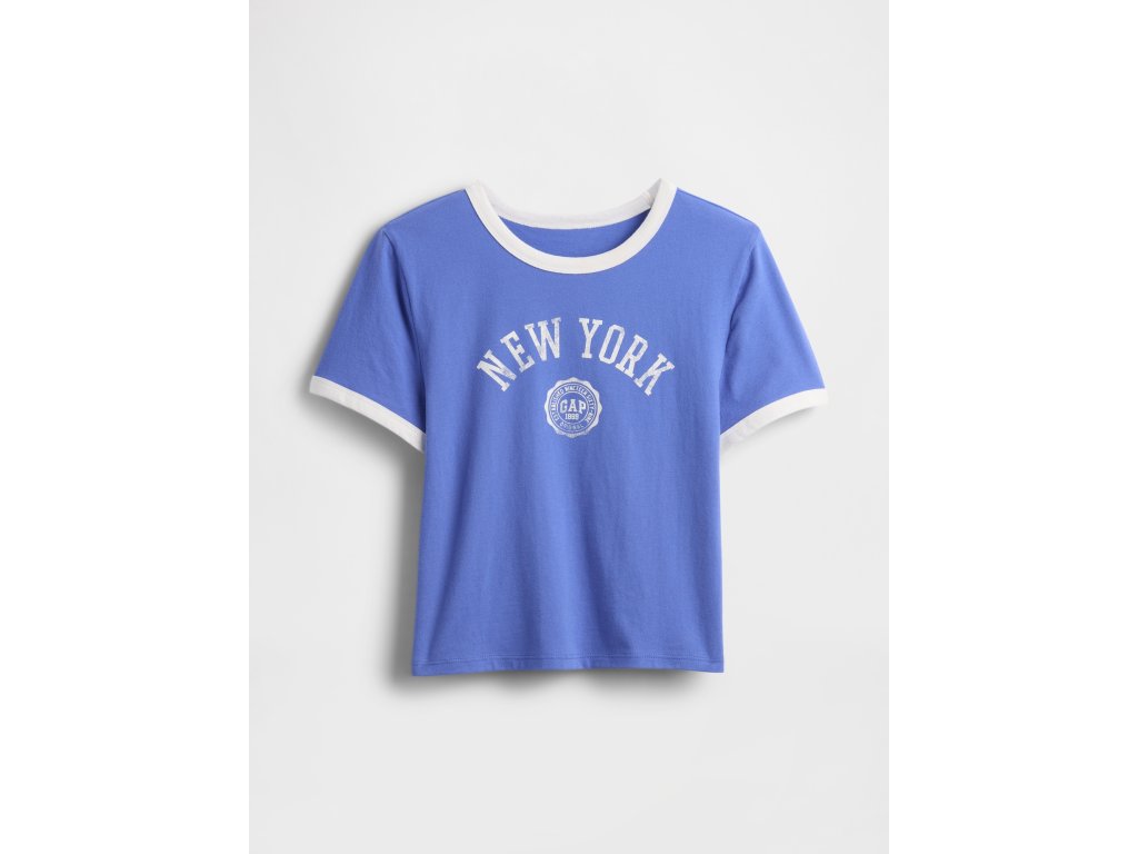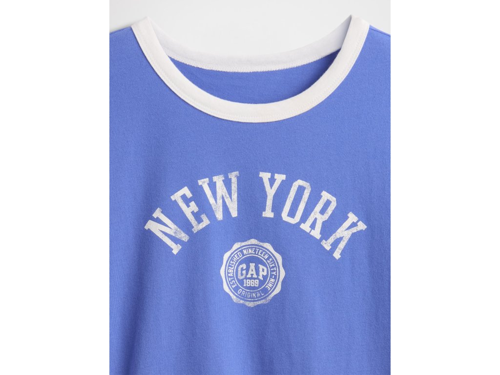 Štýlové dámske krátke tričko z mäkkého česaného bavlneného džerseja ponúka komfort a módny vzhľad v jednom. Jemný materiál je príjemný na dotyk a vďaka svojej priedušnosti je ideálny na každodenné nosenie aj vrstvené outfity. Tričko má klasický okrúhly výstrih s kontrastným lemovaním, ktoré dodáva športový a výrazný vzhľad. Krátke rukávy sú taktiež lemované kontrastnou látkou, čo prináša moderný akcent a oživuje celkový dizajn. Na prednej strane sa nachádza výrazné logo „Gap New York“, ktoré podčiarkuje mestský a trendy štýl. Tesný a priliehavý strih zvýrazňuje postavu, zatiaľ čo ultra krátka dĺžka končí nad pásom, čo vytvára moderný a odvážny vzhľad. Ideálne pre kombináciu s nohavicami a sukňami s vysokým pásom alebo ako vrchná vrstva k šatám. Modelky s veľkosťou S značky Gap meria 172–180 cm, majú pás 60–66 cm a boky 84–97 cm. Modelky s veľkosťou XL majú výšku 172–180 cm, pás 86–91 cm a boky 114–127 cm.Dodatočné parametre