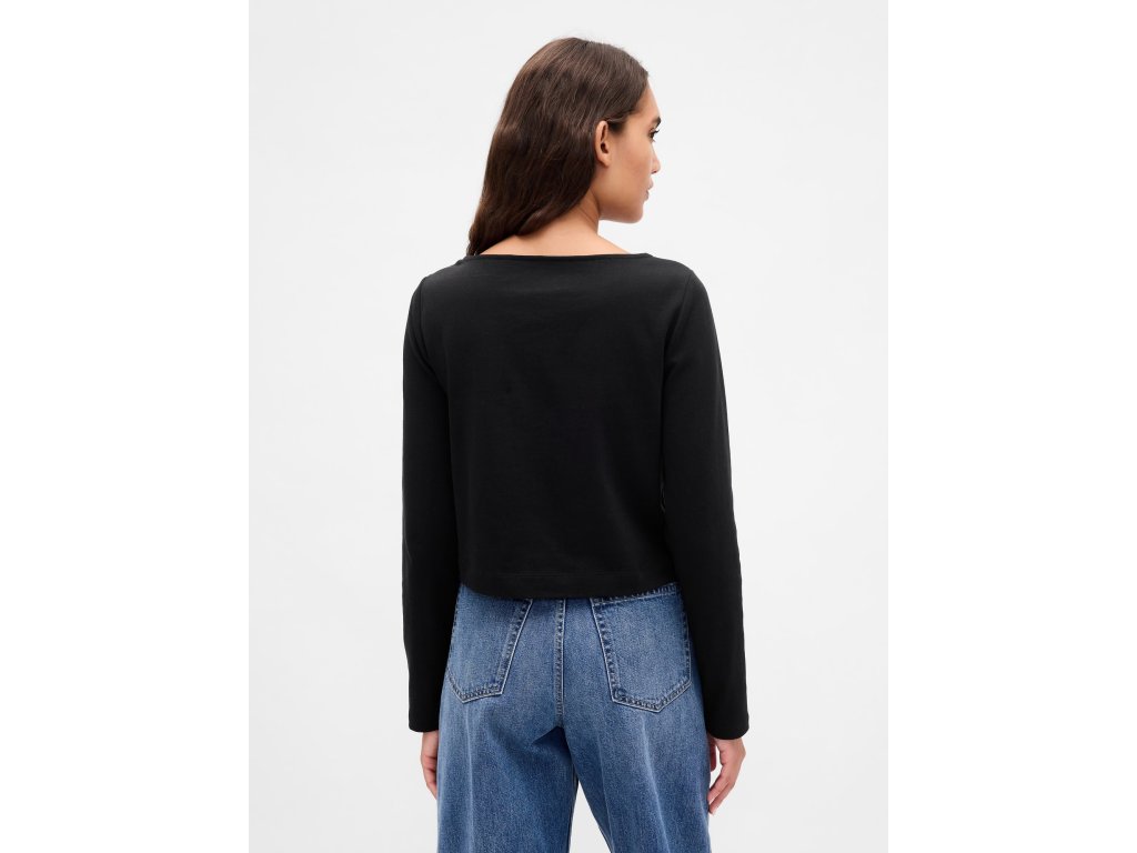 Dámske tričko z ťažšieho mäkkého bavlneného džerseja. Materiál z pevnejšej bavlny dodáva tričku kvalitný vzhľad aj dlhšiu životnosť. Má lodičkový výstrih, dlhé rukávy a na hrudi logo Gap. Strih Classic je rovný a pohodlný, skrátená dĺžka siaha do pása. Vyrobené zo 100% organickej bavlny pestovanej bez použitia syntetických pesticídov a hnojív. Modelky nosia veľkosť S (172–180 cm, pás 60–66 cm, boky 84–97 cm) a veľkosť XL (172–180 cm, pás 86–91 cm, boky 114–127 cm).Dodatočné parametre