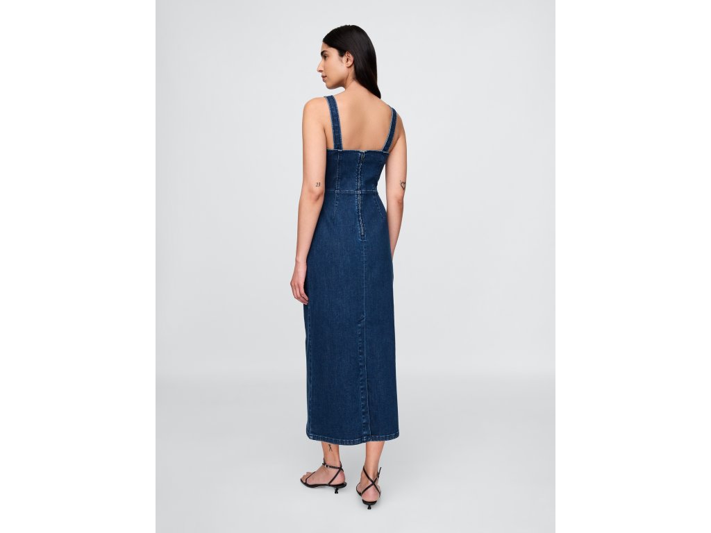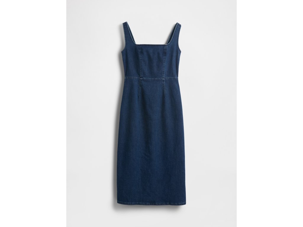 Zmyselné, štýlové a udržateľné – tieto džínsové midi šaty z autentického denimu s jemnou pružnosťou podčiarknu siluetu a ponúknu nadčasový vzhľad s modernými detailmi. Šaty majú štvorcový výstrih, sú bez rukávov a vybavené nastaviteľnými ramienkami typu tank, vďaka ktorým si ich ľahko prispôsobíte svojej postave. Zapínajú sa na skrytý zips s háčikom na chrbte. Rozparok vzadu umožňuje voľnejší pohyb a zároveň dodáva elegantný ženský prvok. Stredne modré opranie zaručuje všestranné využitie - od bežného nosenia až po večerné príležitosti. Strih je Stretch-to-Fit – priliehavý „body con“ strih, ktorý kopíruje krivky a zvýrazní pás, boky aj dĺžku nôh. Midi dĺžka pod kolená prináša vyvážený a elegantný look. Vyrobené s ohľadom na prírodu – šaty obsahujú 8% recyklovanej bavlny a sú súčasťou programu Washwell™, ktorý spotrebuje o 20% menej vody ako bežné procesy. Od roku 2016 tak značka Gap pomohla ušetriť viac ako miliardu litrov vody. Šaty sú vyrobené vo výrobnom závode podporujúcom rovnosť žien a mužov v rámci programov RISE a P.A.C.E., ktoré pomáhajú ľuďom vo výrobe rozvíjať zručnosti, sebavedomie a životnú odolnosť. Modelky vo veľkosti 4 meria 172–180 cm, majú pás 60–66 cm a boky 84–97 cm. Modelky vo veľkosti 16 majú pás 86-91 cm a boky 114-127 cm.Dodatočné parametre