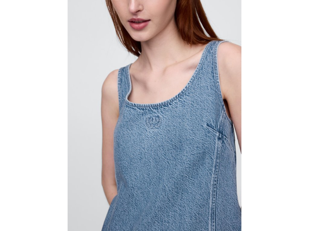 Dámske džínsové mini šaty z UltraSoft denimu vďaka materiálu TENCEL ™ zmesi spájajú moderný vzhľad s pohodlím a udržateľnosťou. Vyrobené z ľahkej a splývavej zmesi bavlny a vlákien TENCEL™, ktoré sú známe svojou mimoriadnou mäkkosťou, priedušnosťou a šetrnosťou k pokožke. Prímes 5% recyklovanej bavlny navyše pomáha znižovať spotrebu nových surovín. Šaty sú súčasťou programu Washwell™, vďaka ktorému sa pri výrobe spotrebuje aspoň o 20 % menej vody – od roku 2016 sa touto technológiou ušetrilo vyše miliardy litrov. Šaty majú okrúhly výstrih, široké ramienka a skrytý zips so zapínaním na háčik na zadnej strane pre čistý, elegantný vzhľad. Predný aj zadný diel tvarujú švy, ktoré jemne kopírujú siluetu a podčiarkujú ženskosť. Na hrudi je nenápadné mini logo Gap a spodný lem zdobí jemne rozstrapkaný okraj. Strih je klasický so siluetou, ktorá sa mierne rozširuje do áčka - lichotí postave a zároveň poskytuje voľnosť pohybu. Mini dĺžka siaha nad kolená, ideálna na leto alebo na vrstvenie s tričkom a bundou. Modelky vo veľkosti S meria 172–180 cm, majú pás 60–66 cm a boky 84–97 cm. Modelky vo veľkosti XL majú pás 86-91 cm a boky 114-127 cm.Dodatočné parametre