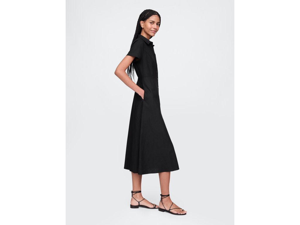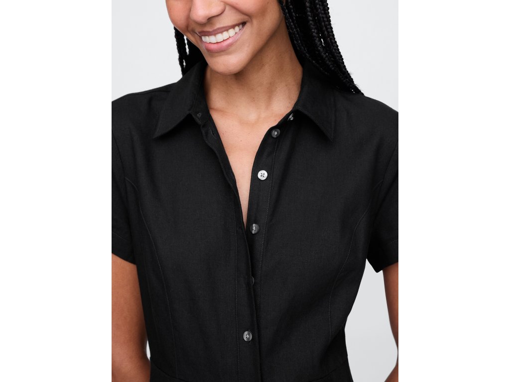 Dámske ľanové maxi košeľové šaty spájajú nadčasovú eleganciu s maximálnym pohodlím. Mäkká zmes ľanu s ťažšou gramážou prináša klasický vzhľad s ešte vyššou úrovňou komfortu, vďaka čomu sú šaty ideálne na celodenné nosenie. Klasický košeľový golier a krátke rukávy dodávajú sofistikovaný a ležérny štýl, zatiaľ čo celoprepínací gombíková léga umožňuje ľahké obliekanie aj prispôsobenie stylingu. Šaty majú classic fit & flare strih, ktorý sa pohodlne prispôsobí postave a vytvára ženskú siluetu s voľnejším padnutím. Ľahké, elegantné a ľahko kombinovateľné šaty, v ktorých sa budete cítiť štýlovo a pohodlne po celý deň. Modelky vo veľkosti S meria 172–180 cm, majú pás 60–66 cm a boky 84–97 cm. Modelky vo veľkosti XL meria 172–180 cm, majú pás 86–91 cm a boky 114–127 cm.Dodatočné parametre