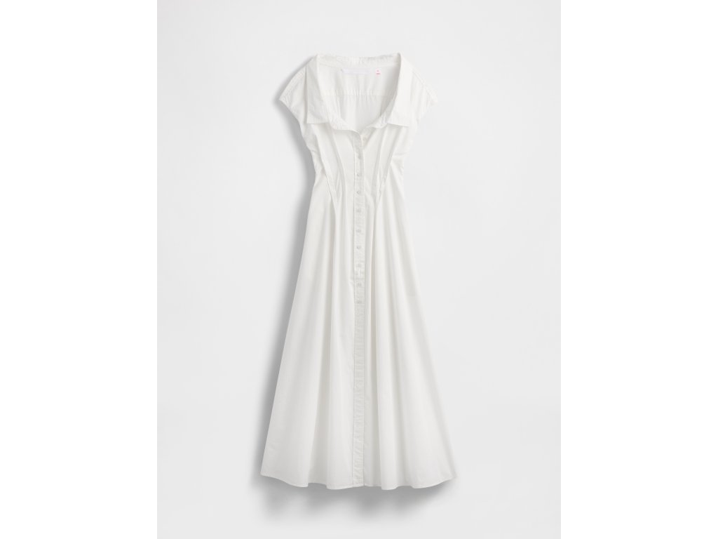 Elegantné maxi košeľové šaty z organickej bavlnenej popelínovej tkaniny prinášajú kúzlo nadčasovej elegancie. Vyrobené z mäkkej organickej bavlny, poskytujú ľahkosť a priedušnosť, ktorá zaručuje dokonalý komfort a jemný dotyk na pokožke. Precízne spracovanie zdôrazňuje každý detail tohto výnimočného modelu. Šaty sú navrhnuté v košeľovom strihu s okrúhlym výstrihom a fazónovým golierom, čo vytvára čistú a elegantnú líniu. Krátke rukávy dodávajú ľahkosť a voľnosť, zatiaľ čo gombíková léga po celej dĺžke prináša sofistikovaný nádych. Silueta „Fit & Flare“ krásne tvaruje postavu a zároveň poskytuje voľnosť pohybu. Dĺžka siahajúca až k členkom dodáva šatám vznešený vzhľad a podčiarkuje ich osobitý charakter. Šaty sú vyrobené zo 100% organicky pestovanej bavlny, ktorá vzniká bez použitia syntetických pesticídov a hnojív. Tento zodpovedný prístup nielen šetrí životné prostredie, ale zároveň zaisťuje maximálnu kvalitu a jemnosť látky. Jedinečný model z kolekcie GapStudio spája ikonický štýl značky Gap s dôrazom na kvalitné spracovanie a udržateľnú módu. Tieto šaty sú symbolom spojenia elegancie, zodpovednosti a nadčasového štýlu, ktorý vydrží a vynikne v každej situácii.Dodatočné parametre