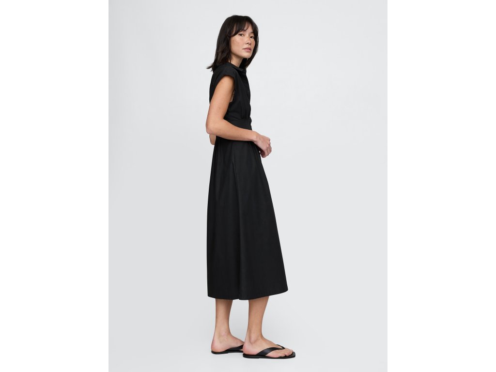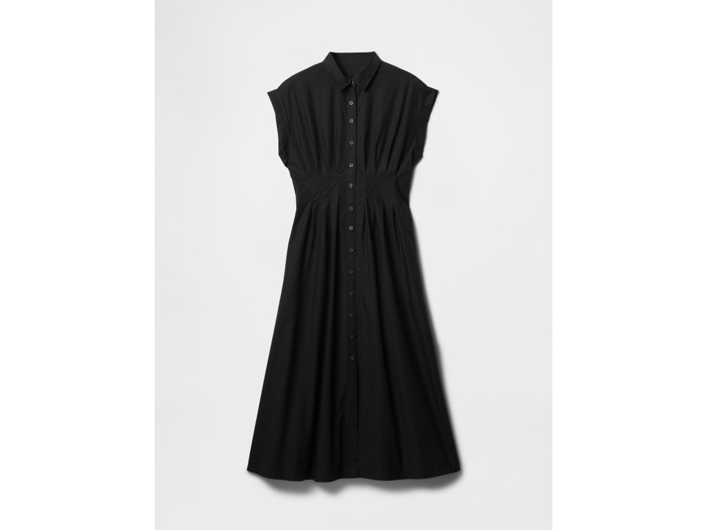 Dámske midi šaty z mäkkého bavlneného popelínu predstavujú dokonalú kombináciu elegancie a pohodlia. Šaty majú klasický golier a zapínanie na gombíky po celej dĺžke, čo z nich robí univerzálny kúsok vhodný na rôzne príležitosti. Krátke rukávy a jemné sklady pridávajú šatám na sofistikovanosti, zatiaľ čo rozparok v prednej časti dodáva moderný a hravý vzhľad. Šaty majú strih fit & flare, ktorý krásne obopína telo v oblasti pása a postupne sa rozširuje smerom k spodnej časti, čím vytvára lichotivú siluetu. Dĺžka pod kolená dodáva šatám nádych elegancie a ženskosti. Súčasťou programu RISE a P.A.C.E., tieto šaty podporujú rodovú rovnosť a posilňujú postavenie žien vo výrobných podnikoch, čo prispieva k udržateľnejšiemu a zodpovednejšiemu módnemu priemyslu. Modelky nosia veľkosť S (výška 172–180 cm, pás 60–66 cm, boky 84–97 cm) a veľkosť XL (výška 172–180 cm, pás 86–91 cm, boky 114–127 cm).Dodatočné parametre